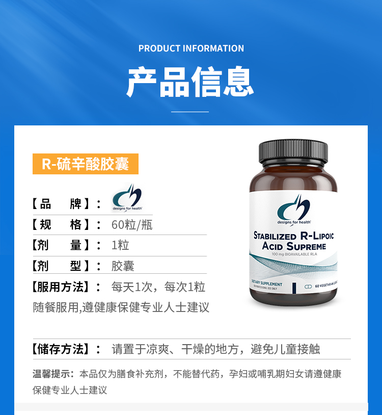 【效期至27年5月】R-硫辛xin酸胶囊 Designs for health Stabilized R-Lipoic Acid Supreme caps* 60粒/瓶