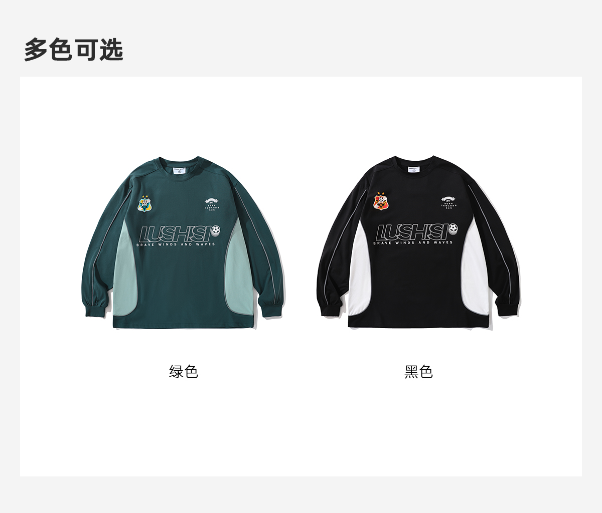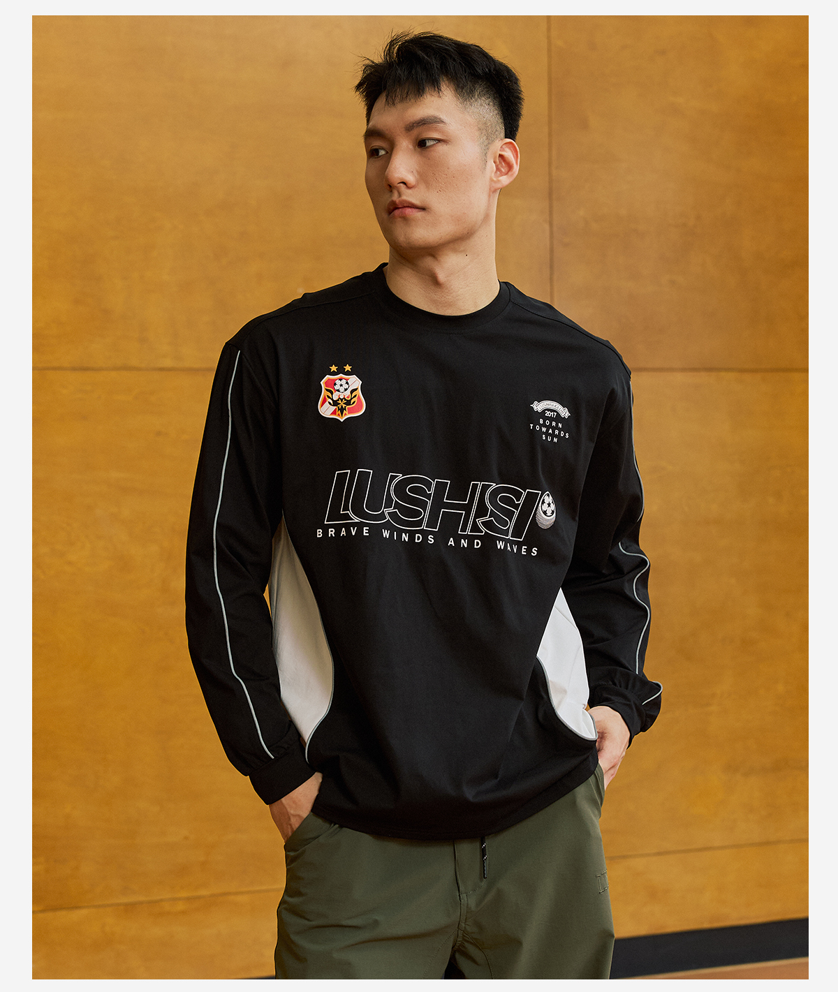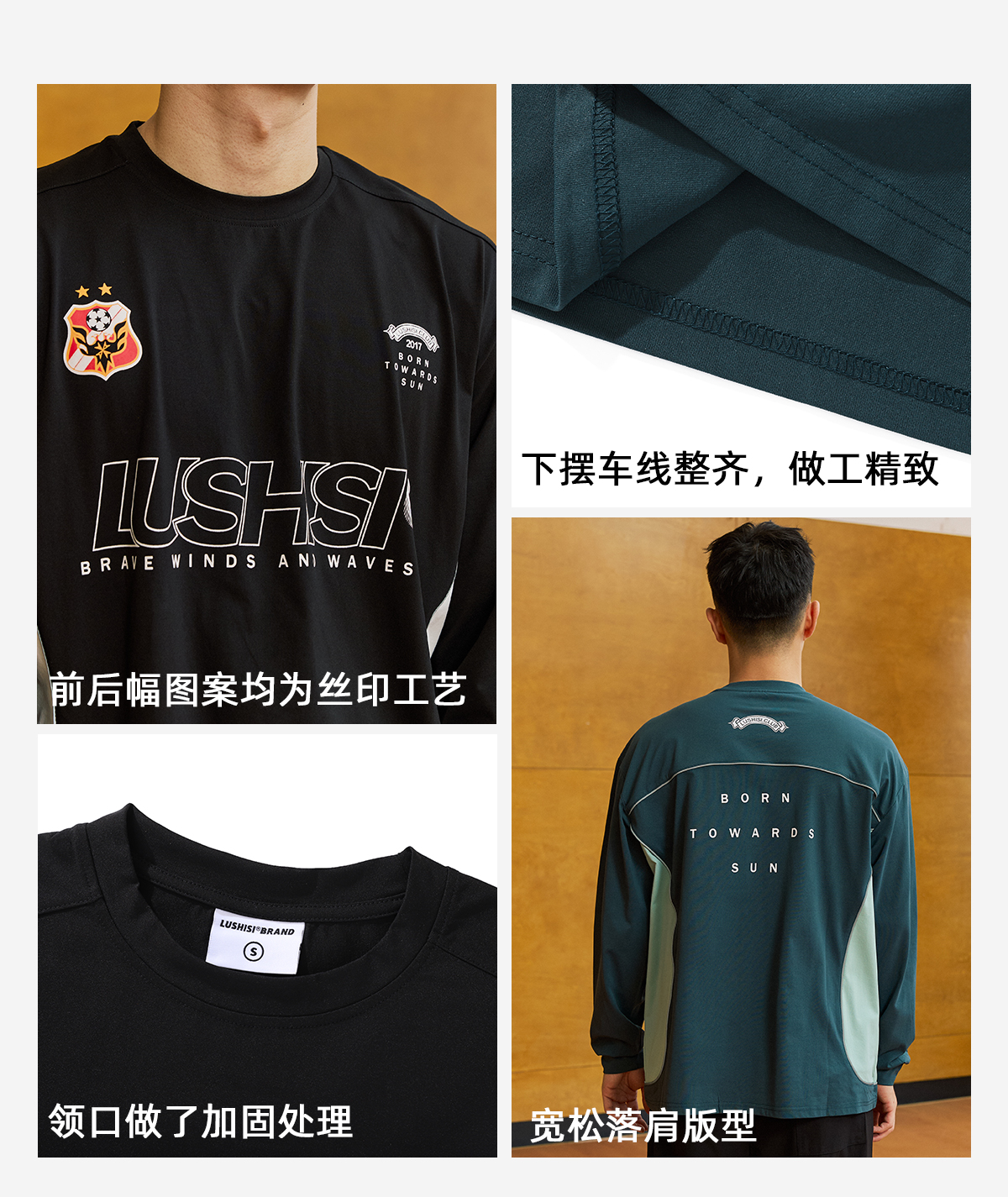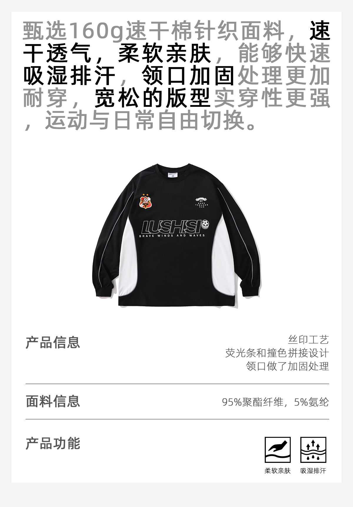 LUSHISI潜行主题拼接长袖复古球衣运动骑行篮球t恤吸湿速干宽松男