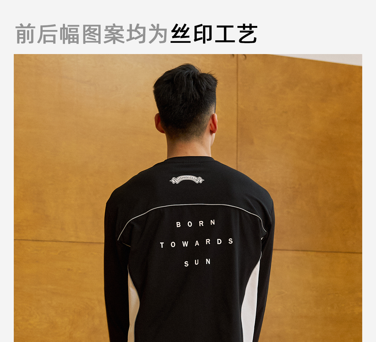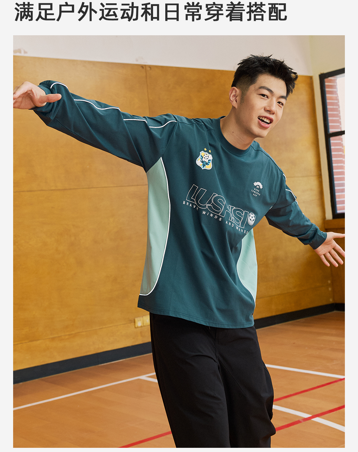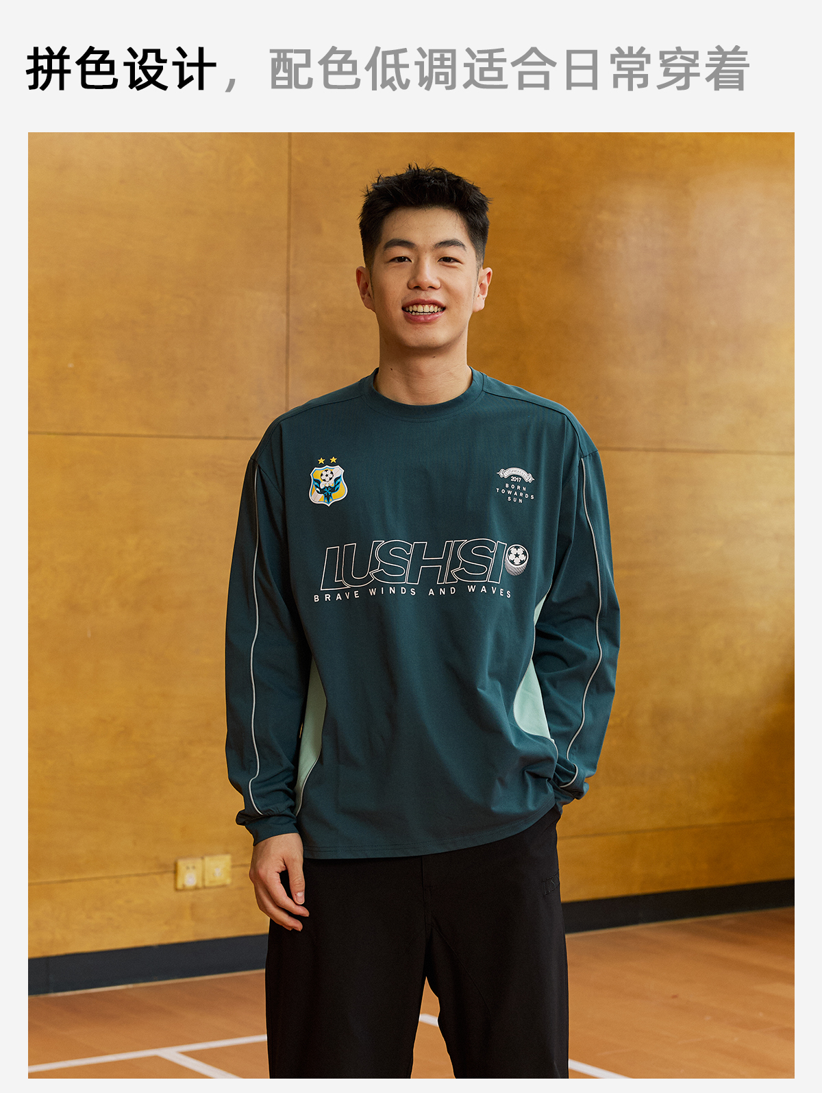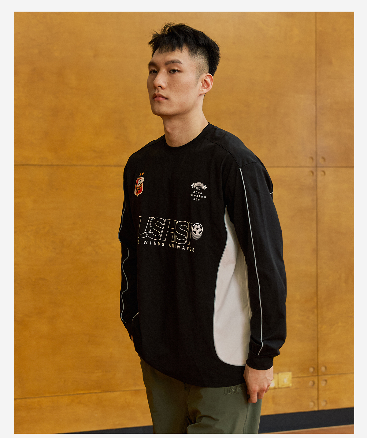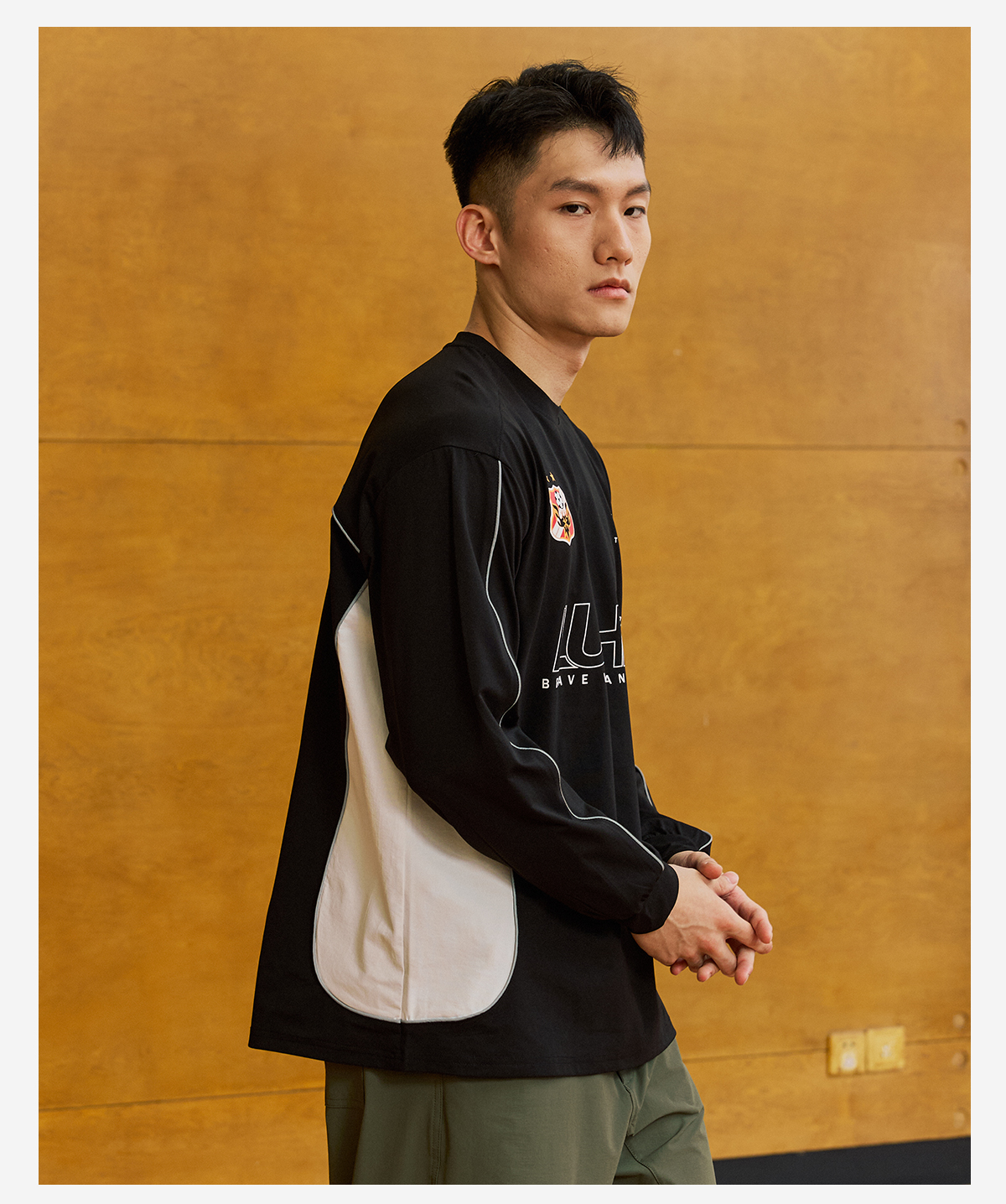 LUSHISI潜行主题拼接长袖复古球衣运动骑行篮球t恤吸湿速干宽松男