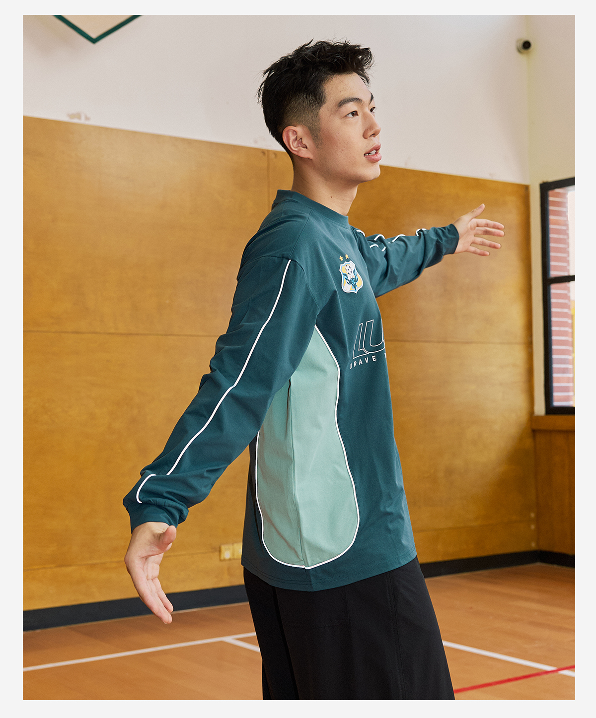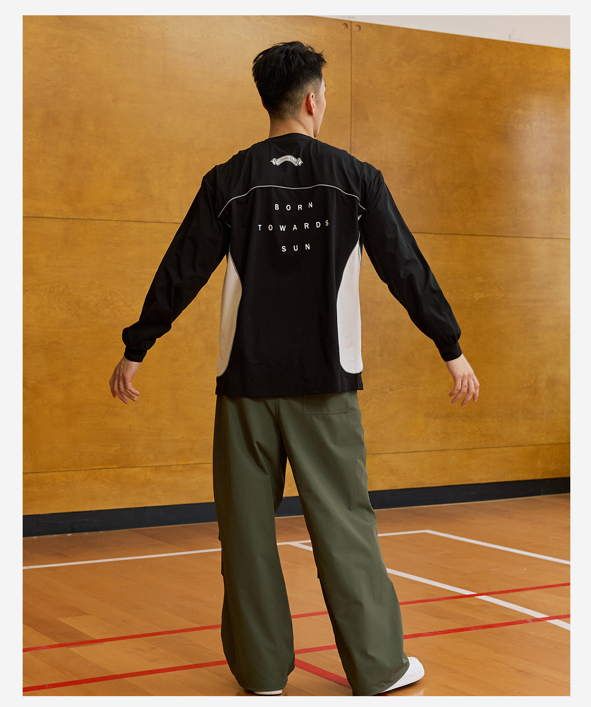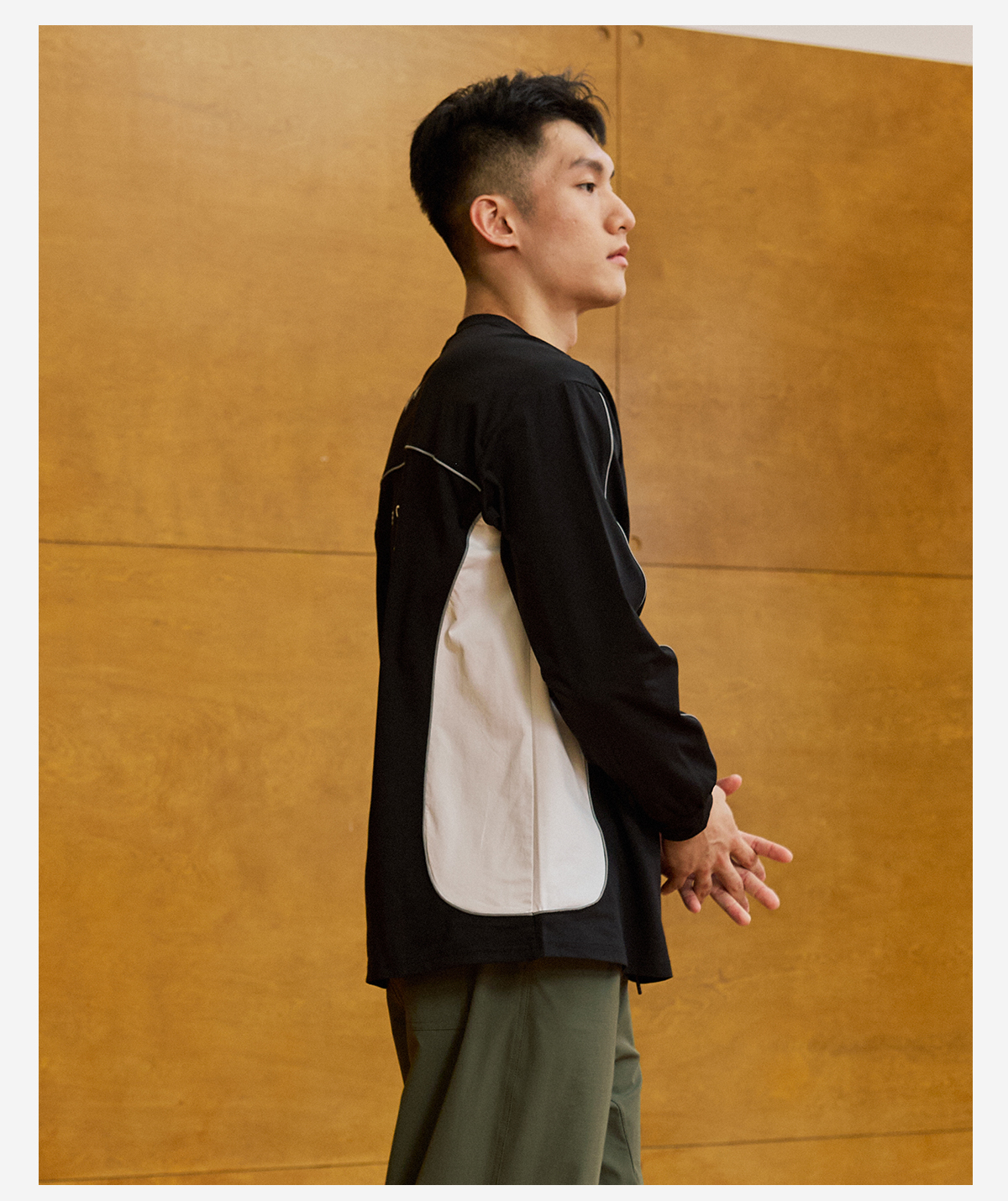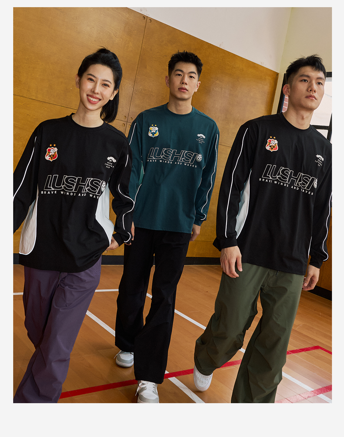 LUSHISI潜行主题拼接长袖复古球衣运动骑行篮球t恤吸湿速干宽松男