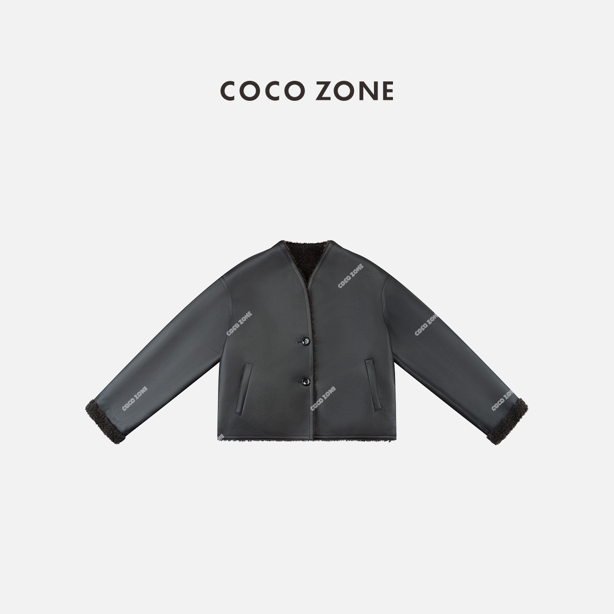 COCO ZONE 秋冬时尚女士V领排扣拼接保暖外套CC2C2223