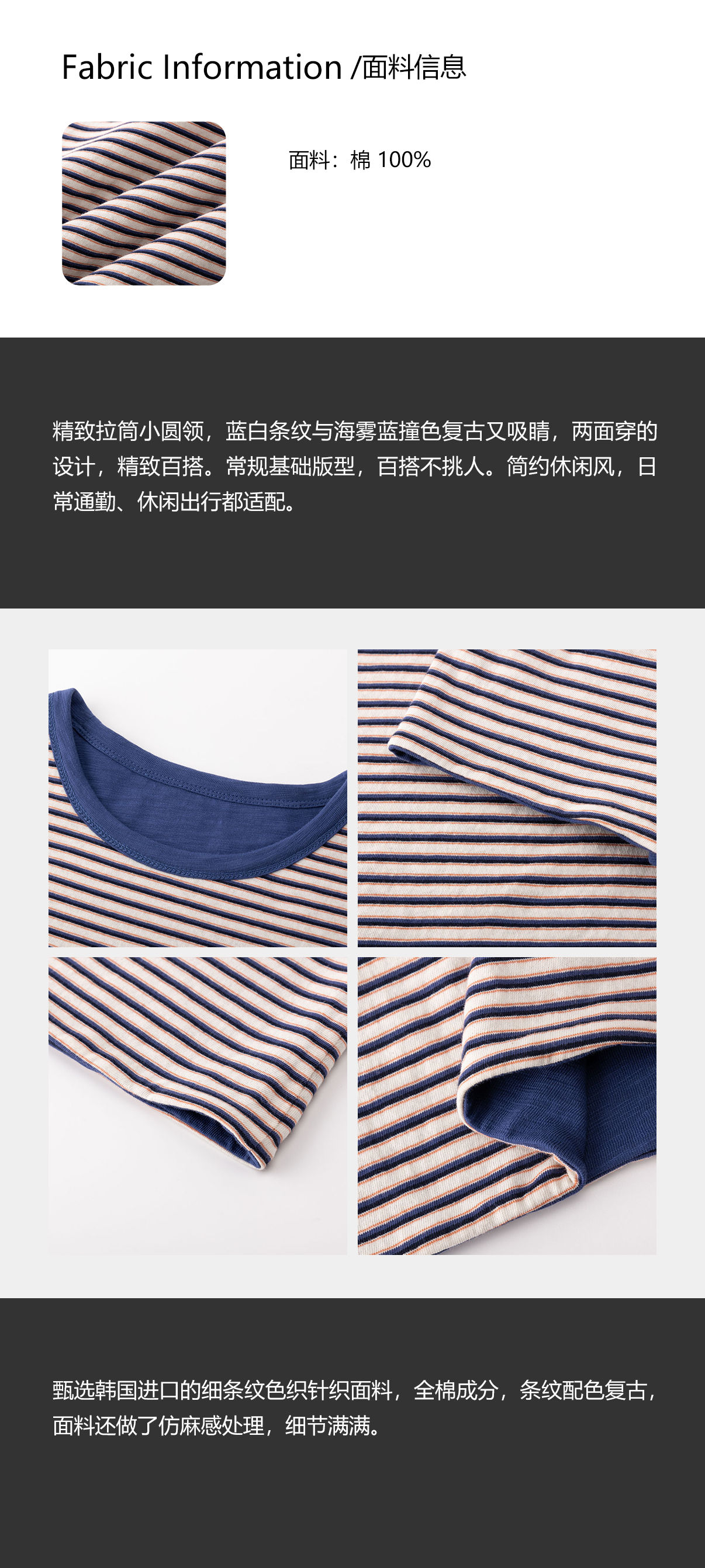 COCO ZONE 刘一一【100棉】撞色经典条纹竹节纹理T恤 CD1A1198