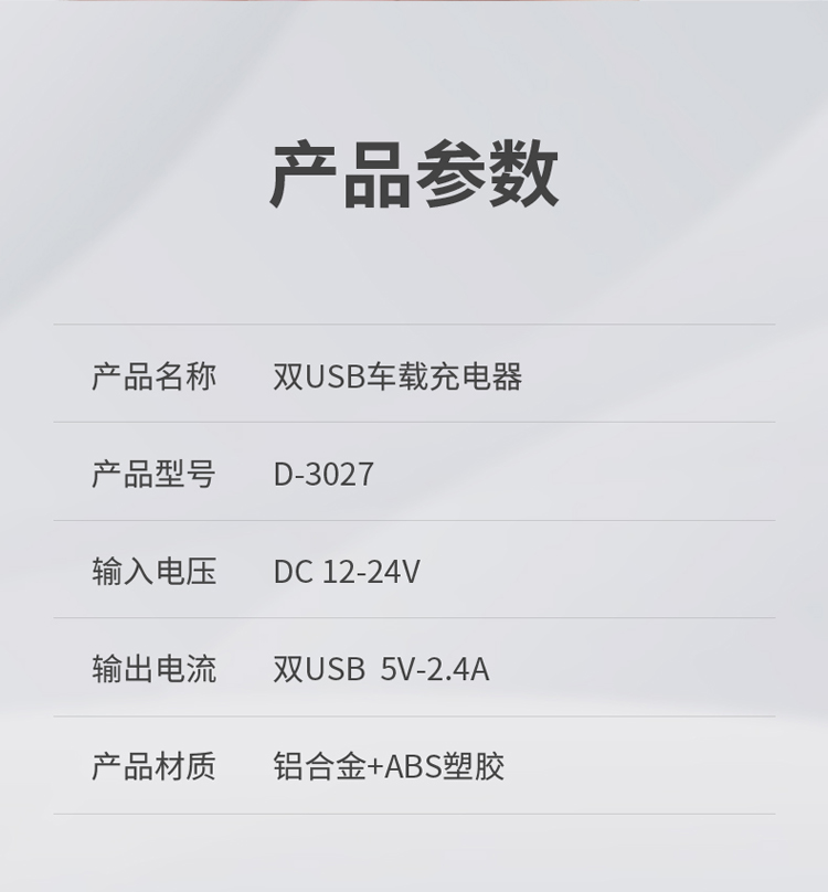 爱车屋 双USB车充D-3027