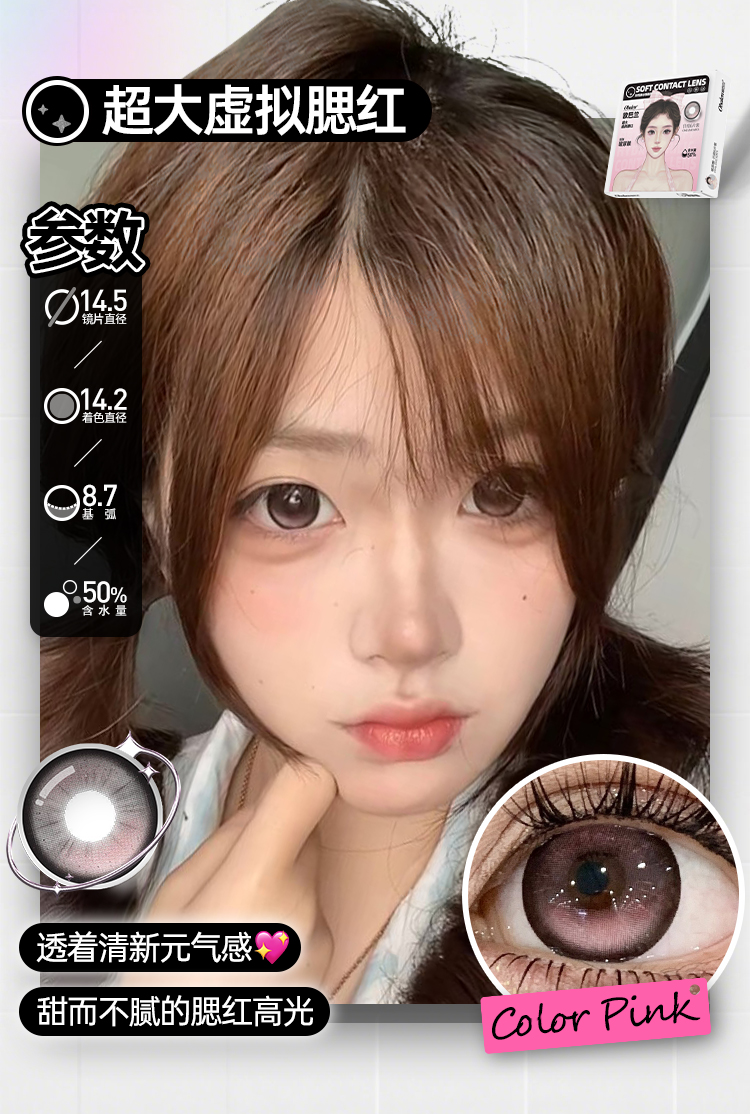 新款【超大虚拟腮红】14.5大直径日抛美瞳6片装