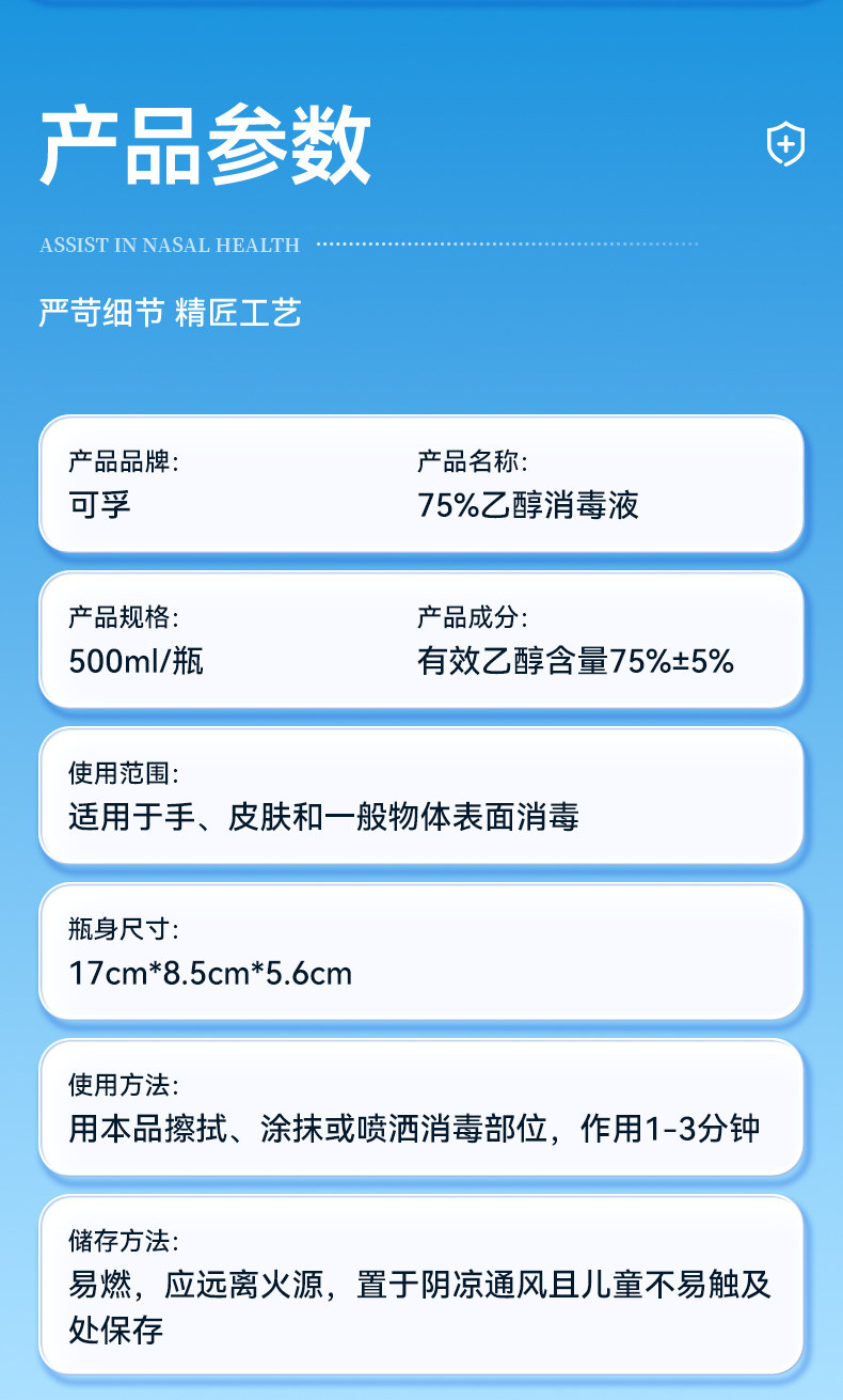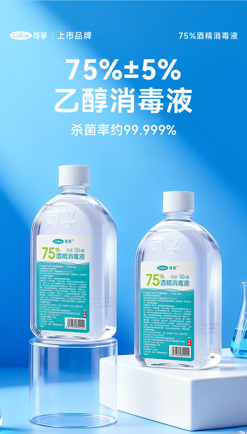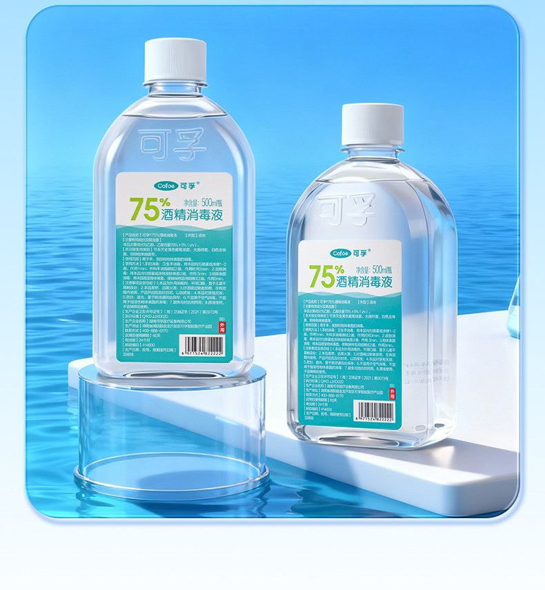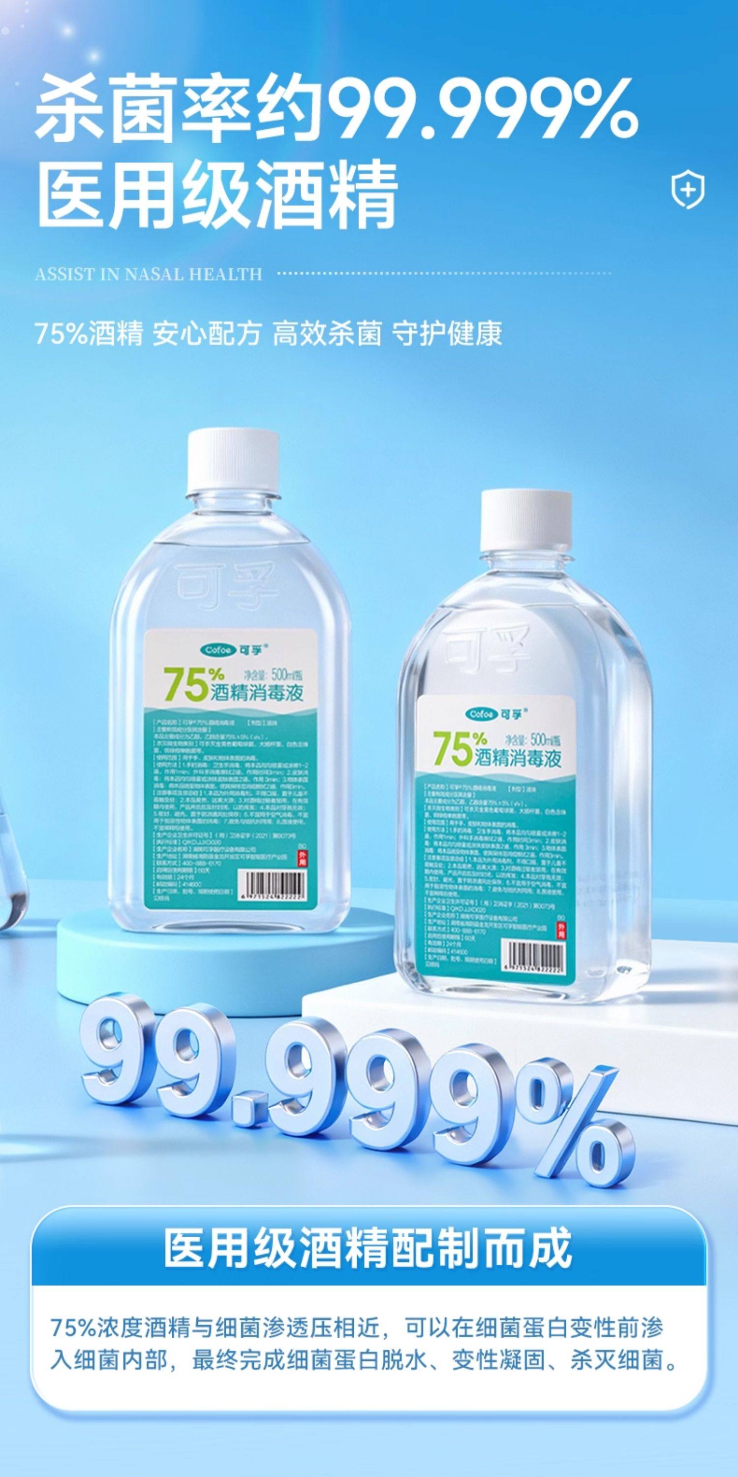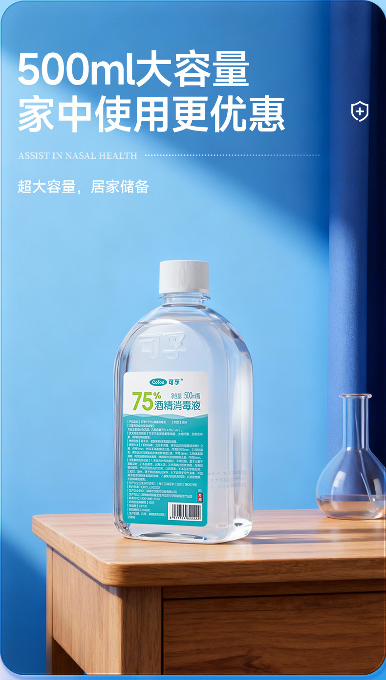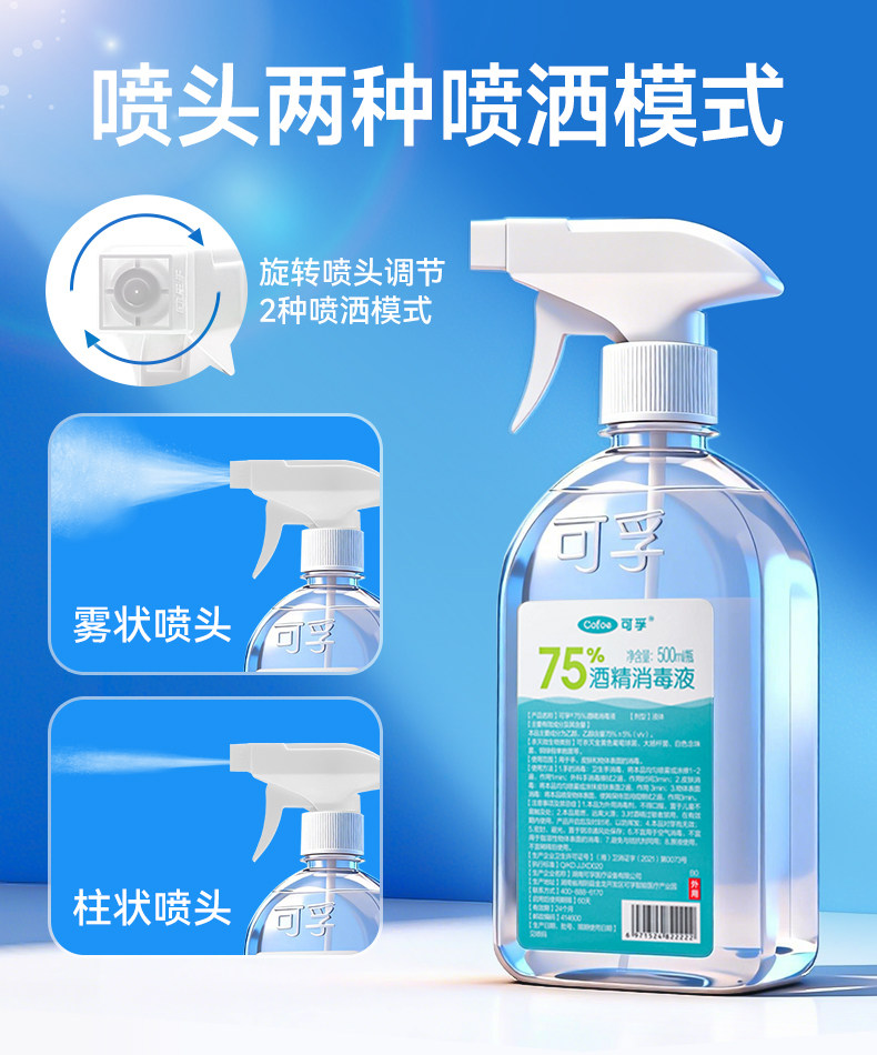 可孚酒精75度医用消毒液水医疗乙醇家用杀菌专用喷雾装500ml大瓶