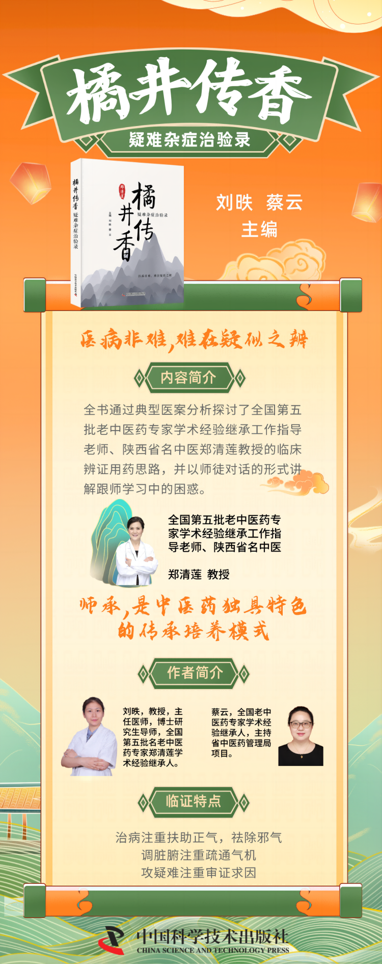 传承是中医药发展的根基,创新是中医药发展的活力。中医药师承教育是独具特色、符合中医药人才成长和学术传承规律的教育模式,是中医药人才培养的重要途径。郑清莲教授,全国第五批老中医药专家学术经验继承工作指导老师、陕西省名中医,临床经验丰富。本书由郑老的学术经验继承人刘昳、蔡云及传承工作室成员根据平日里跟师所见、所闻、所思汇编而成。全书共 5 章,主要对郑老的行医之路、学术主张、治疗病种、临床用药经验等进行总结整理,并通过典型医案分析探讨了郑老的临床辨证用药思路,对于跟师学习中的困惑,则以师徒对话的形式呈现。本书论述全面,临床实用性强,适合广大临床医务工作者、中医爱好者参考学习。