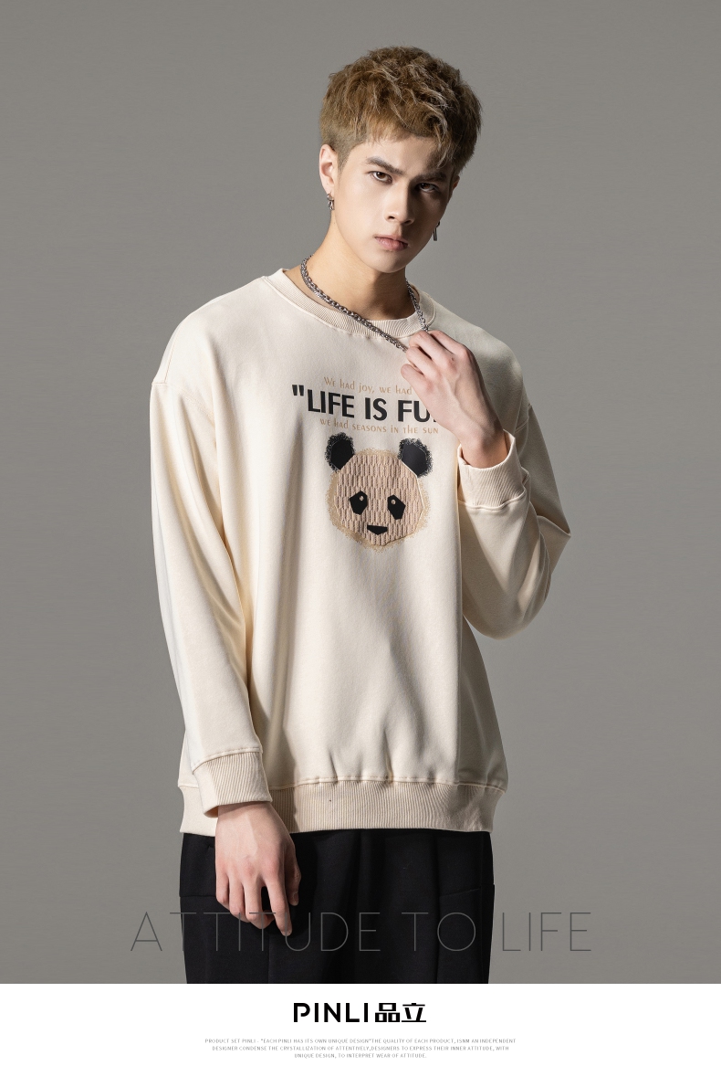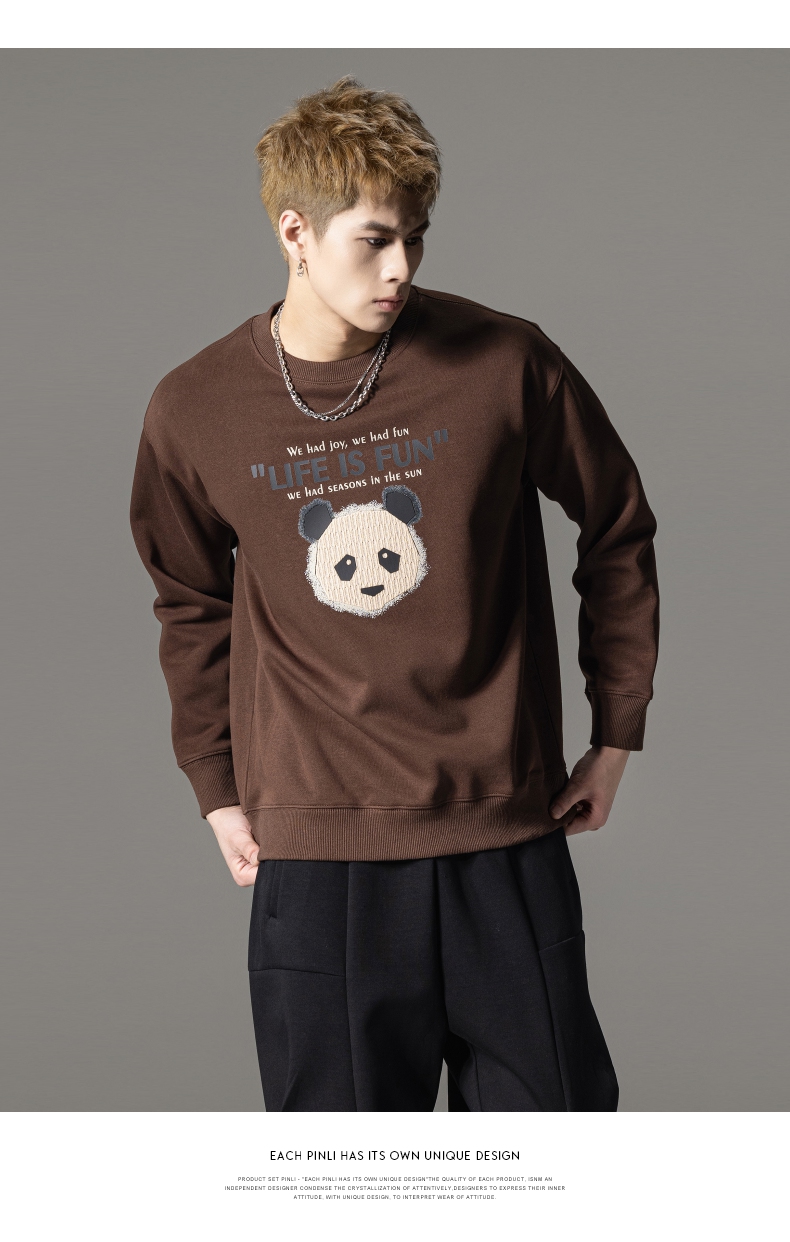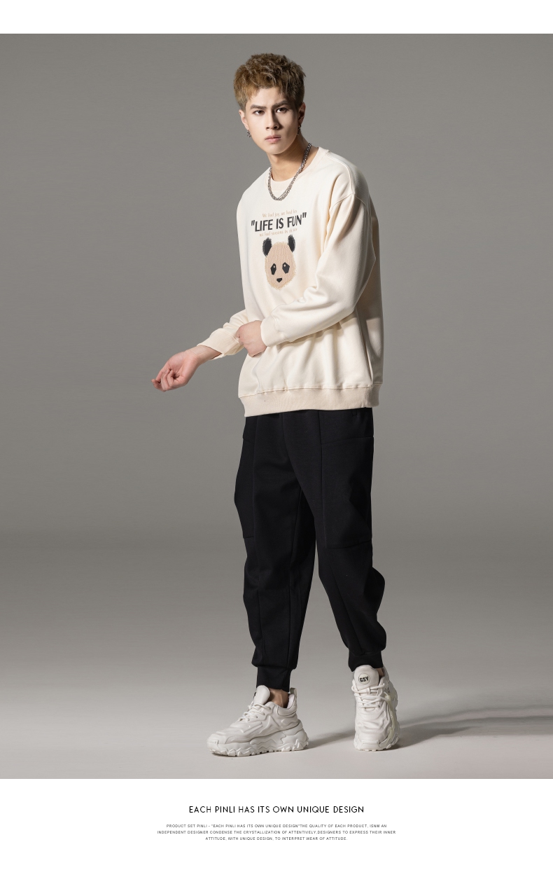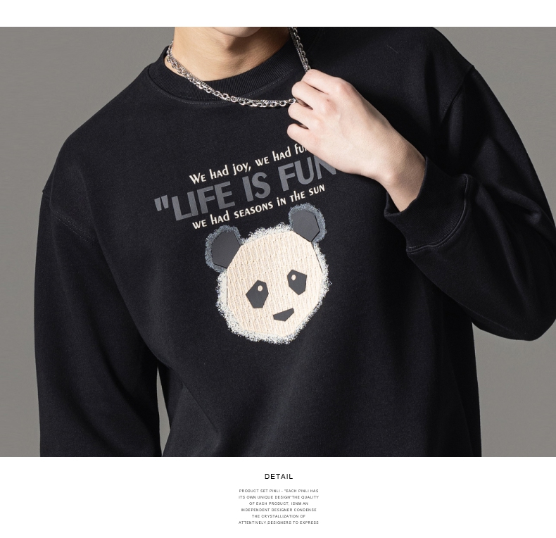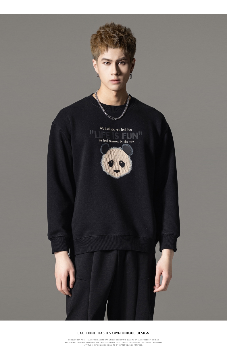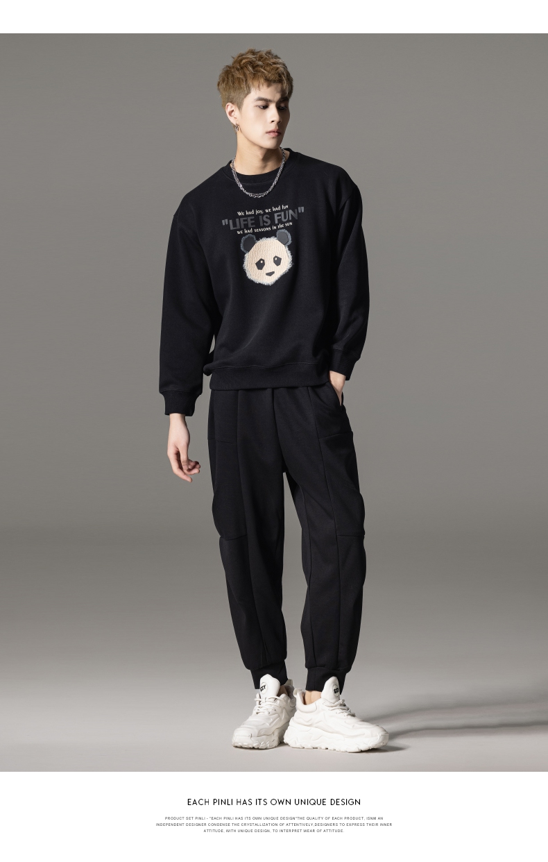 PINLI品立秋冬新款男士熊猫贴布压胶字母烫画圆领套头卫衣潮BG233109037