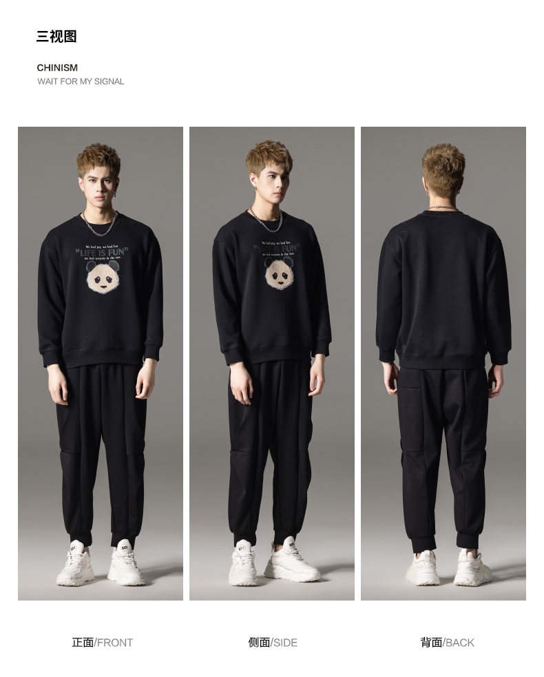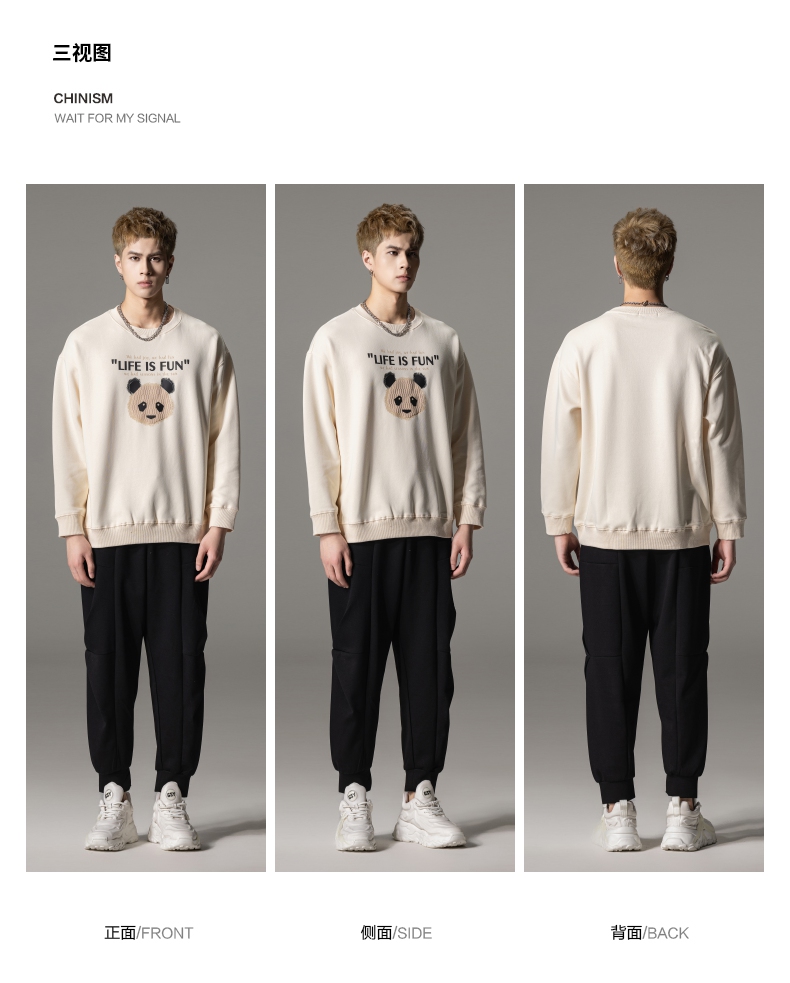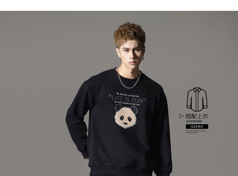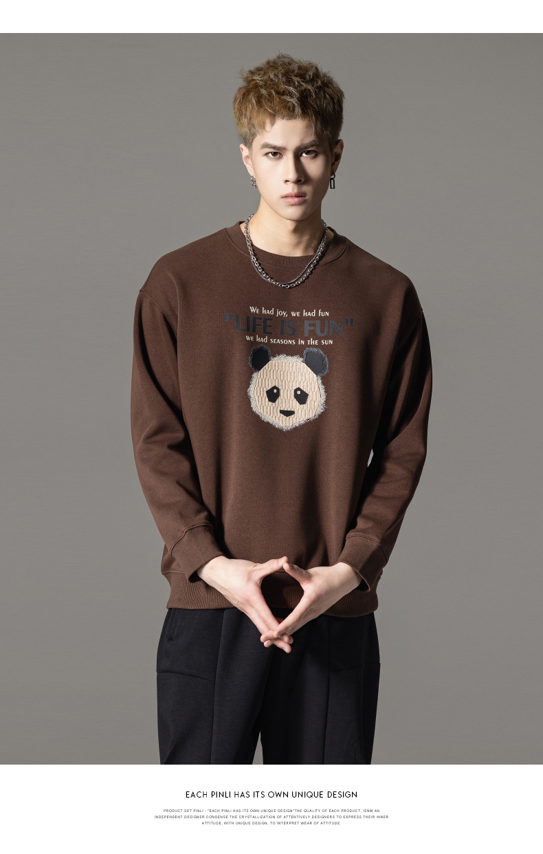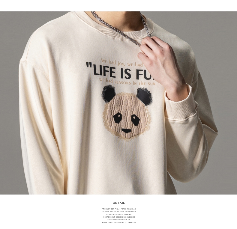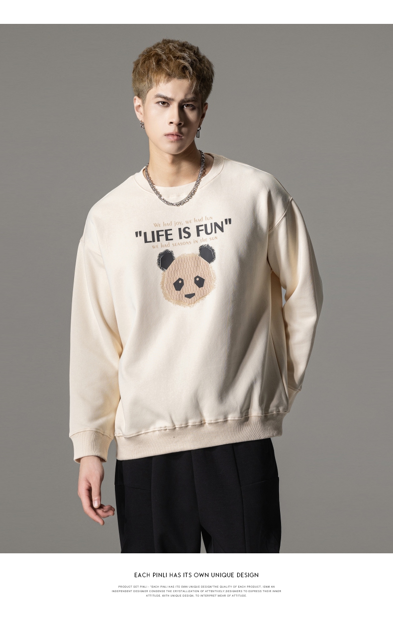 PINLI品立秋冬新款男士熊猫贴布压胶字母烫画圆领套头卫衣潮BG233109037