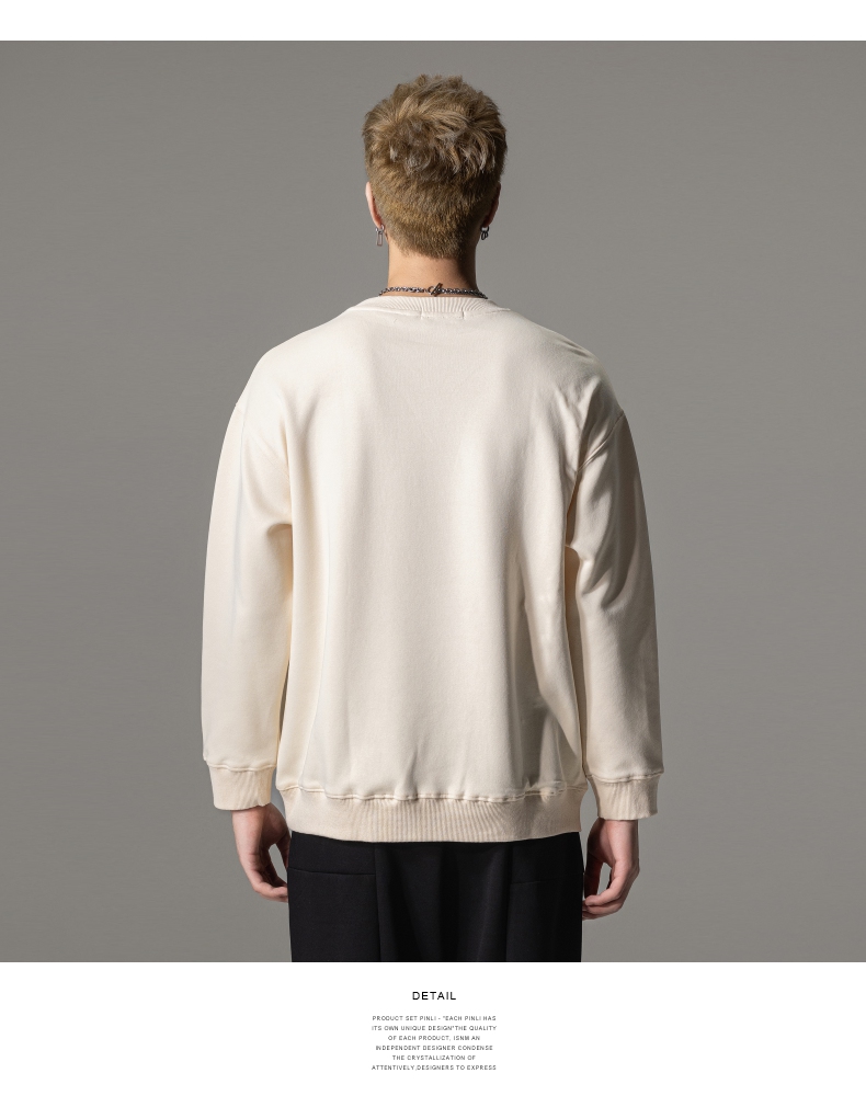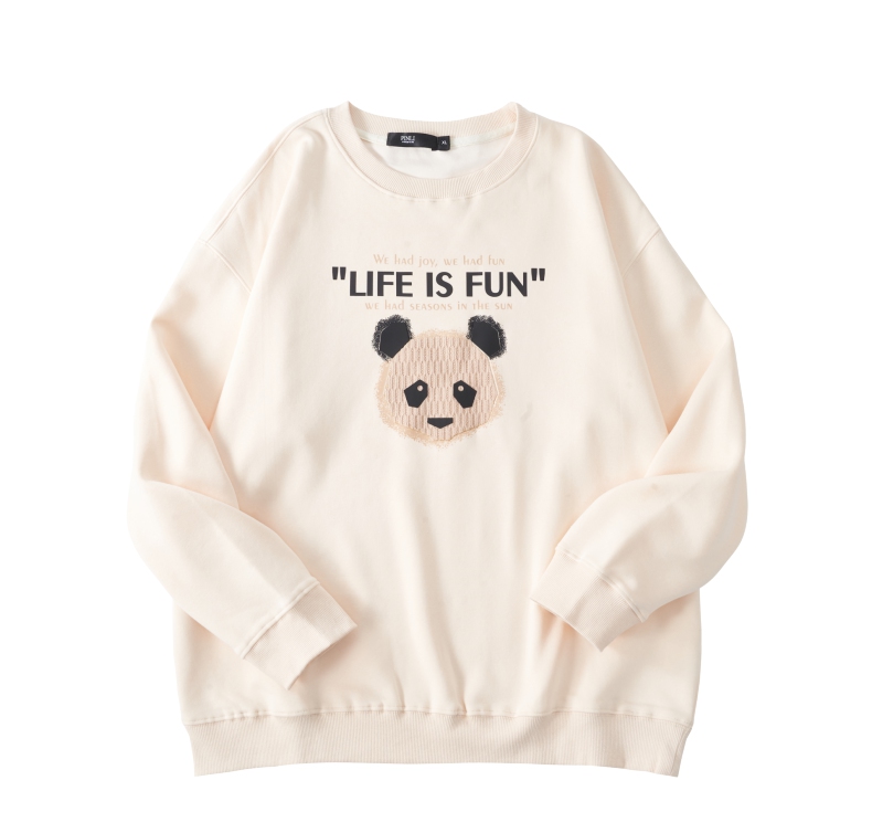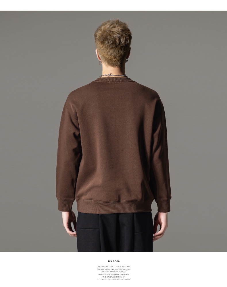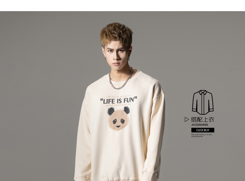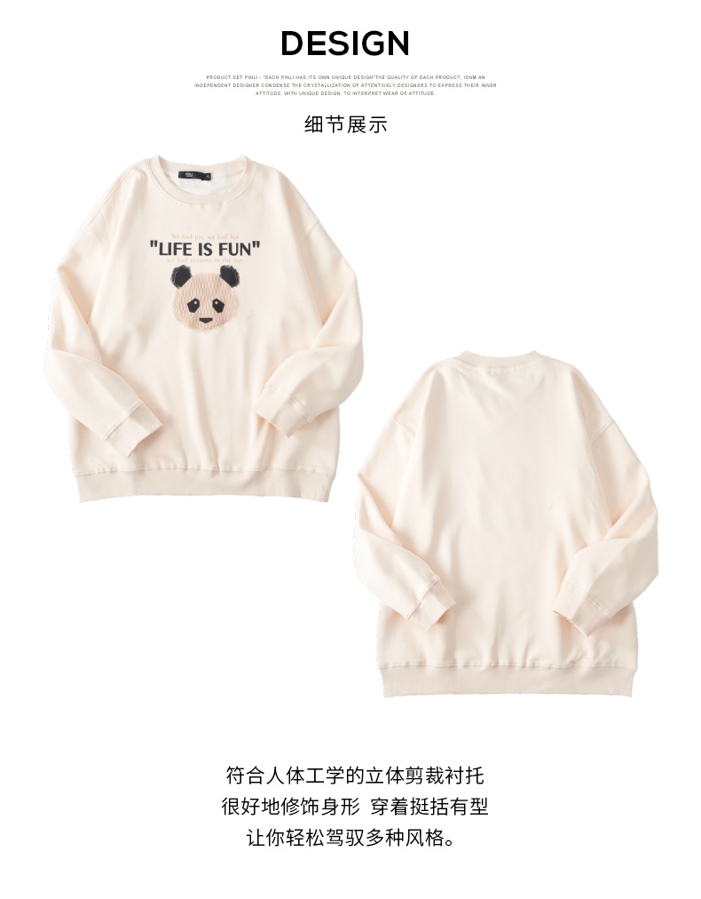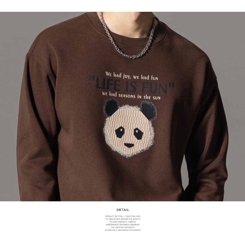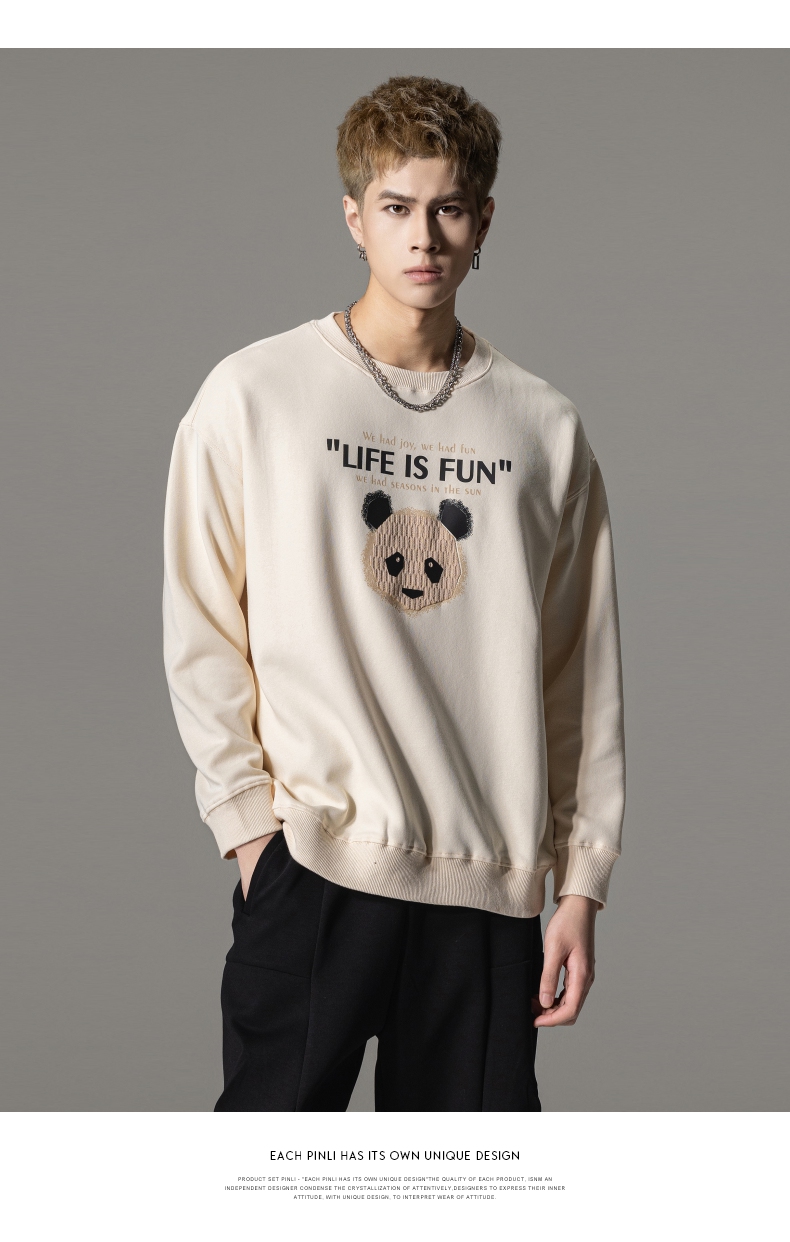 PINLI品立秋冬新款男士熊猫贴布压胶字母烫画圆领套头卫衣潮BG233109037