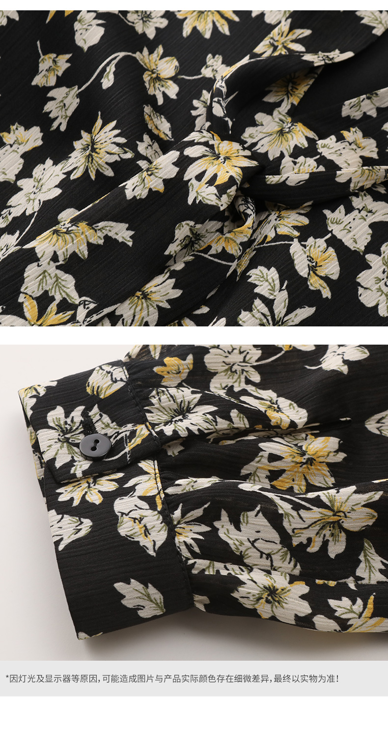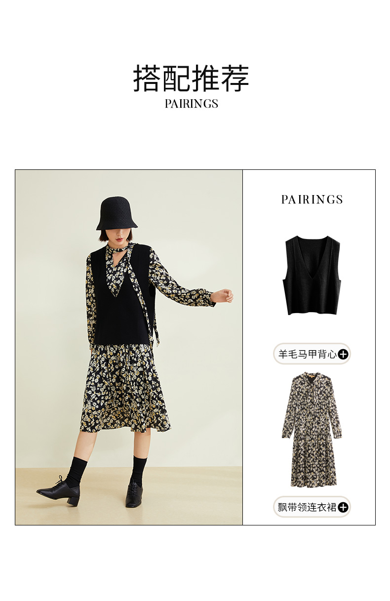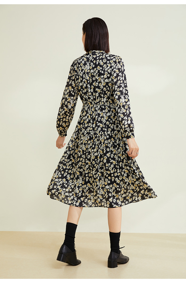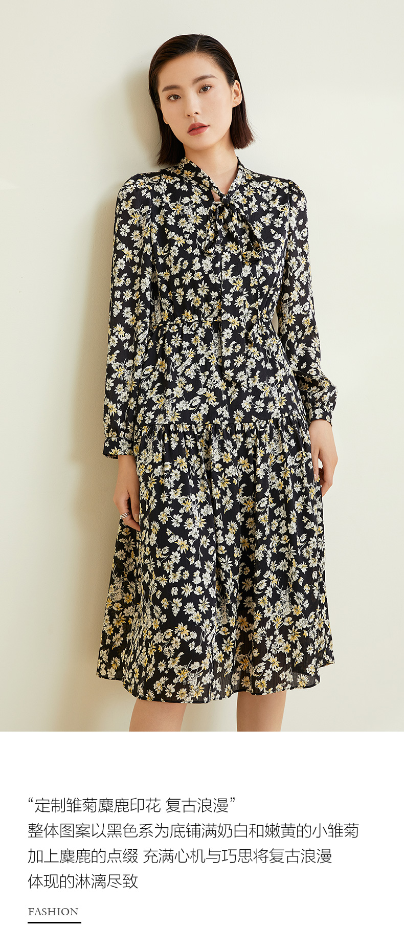 玳莎显瘦连衣裙女2022新款秋季优雅碎花长袖飘带设计感中长款裙子 CC35301