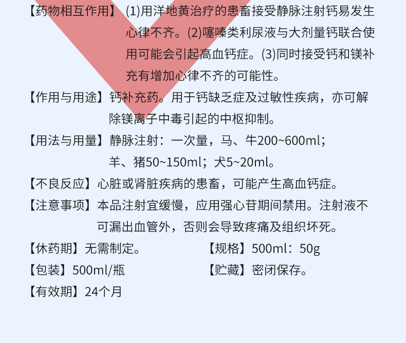 华畜兽药葡萄糖酸钙注射液兽用猪牛羊佝偻病软骨症产后瘫补钙针剂