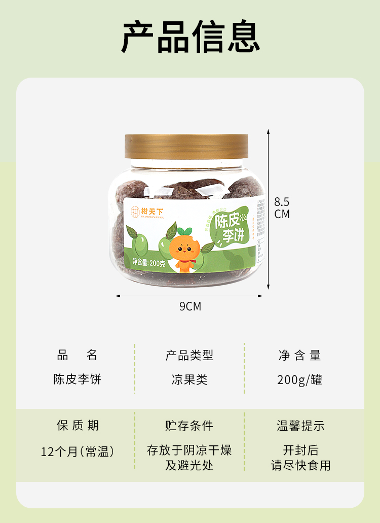 柑天下丨陈皮李饼广东蜜饯凉果果脯休闲零食