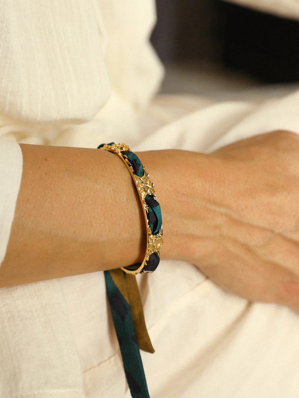 订购14周到|AN-NEE-FEERIE-藤蔓-棕绿色 夏帕诺瓦 1cm 丝巾手镯[法国设计师]