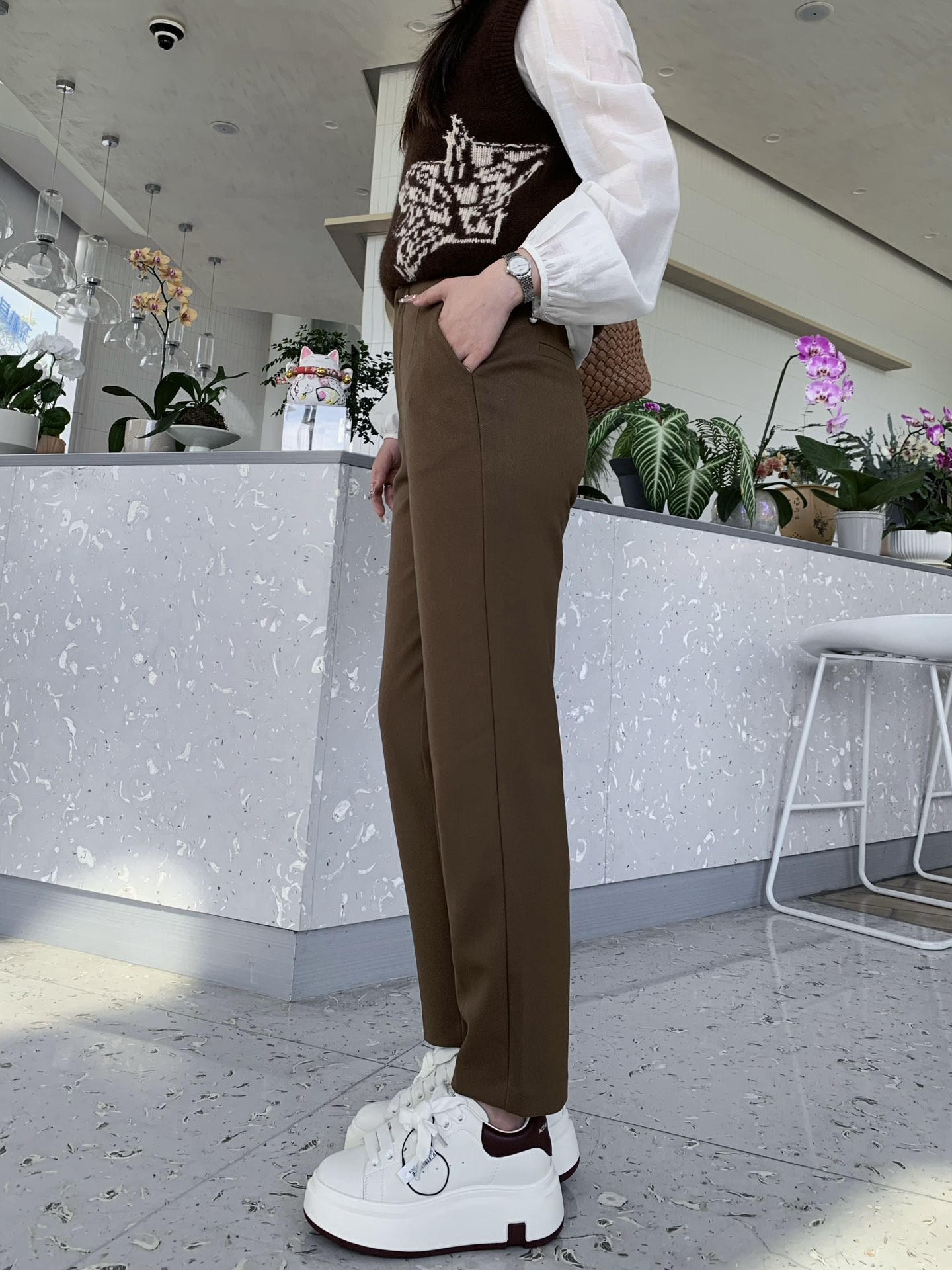 腰镶嵌白边小西裤9521100033