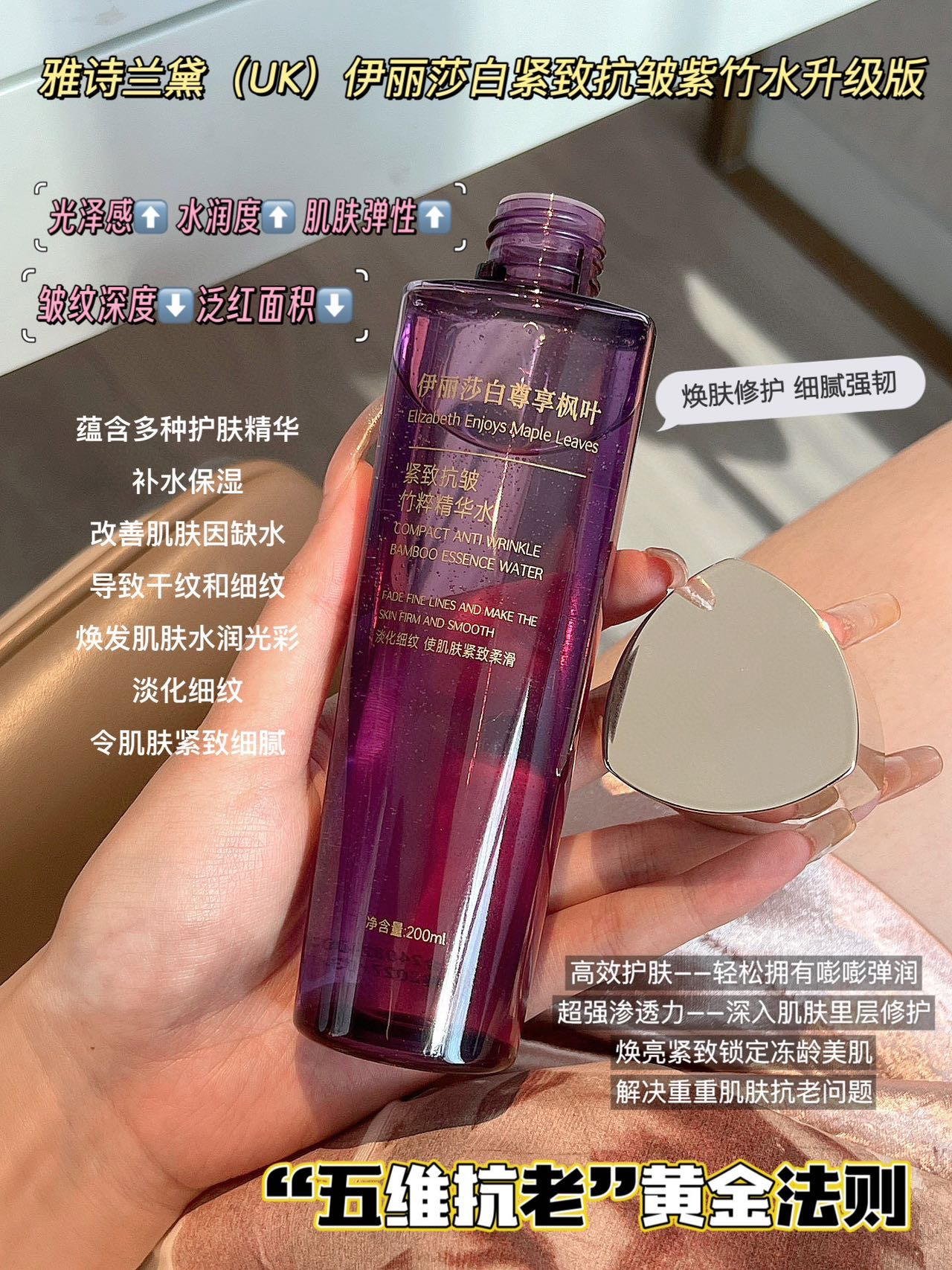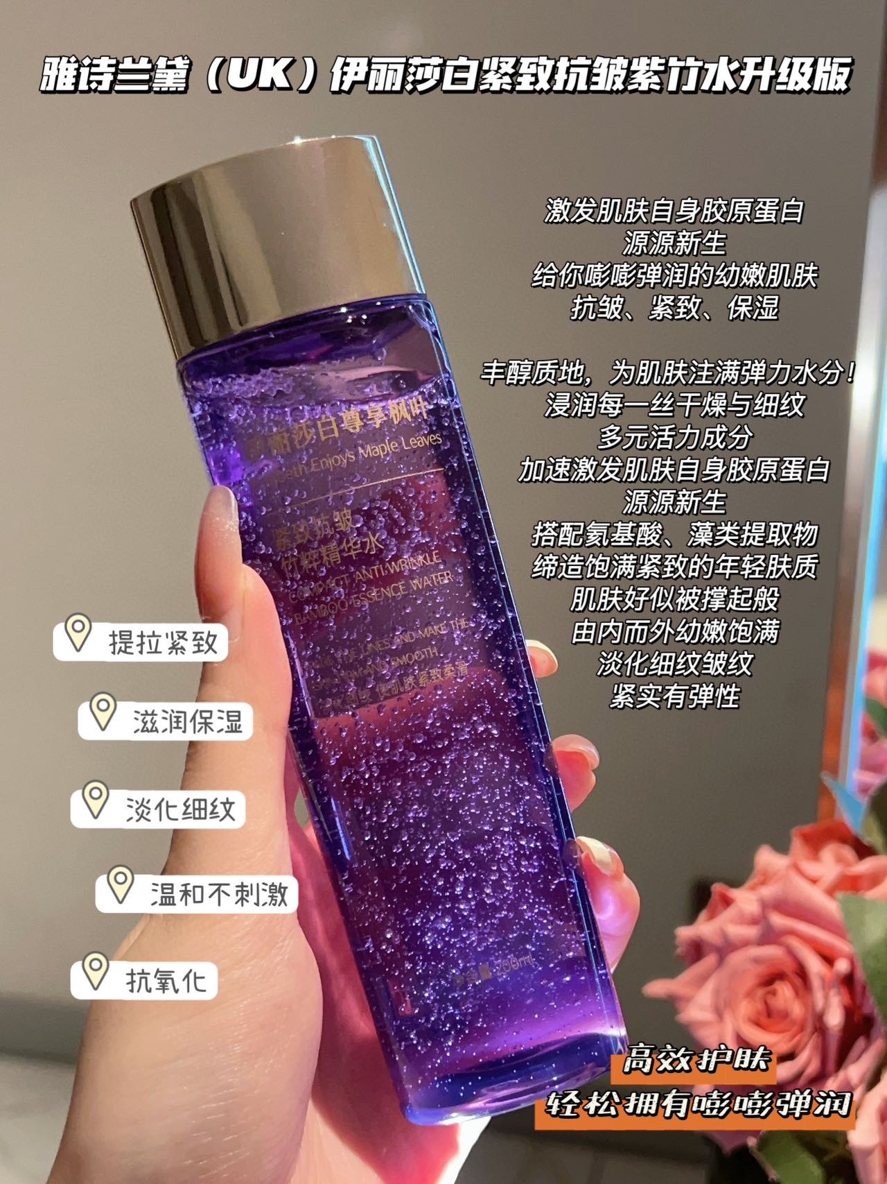 抗初老必备【雅诗兰黛(UK)伊丽莎白紧致抗皱紫竹水升级版】熬夜脸越用越嫩 温和不刺激,蕴含中国紫竹萃取精华抗衰老更是一绝 由内而外幼嫩饱满,淡化细纹细纹,紧实有弹性