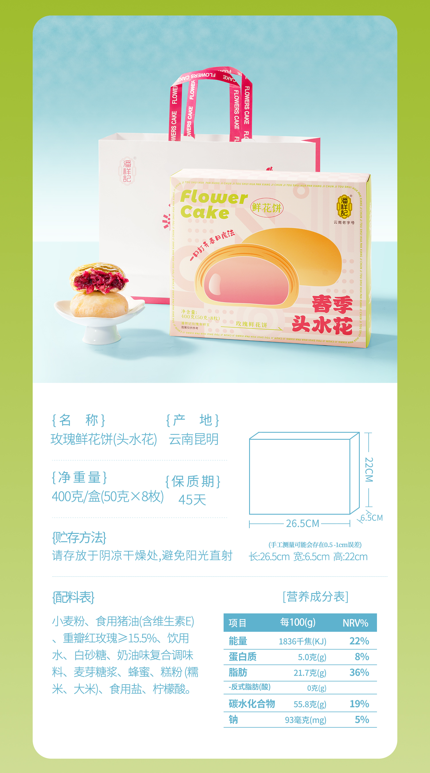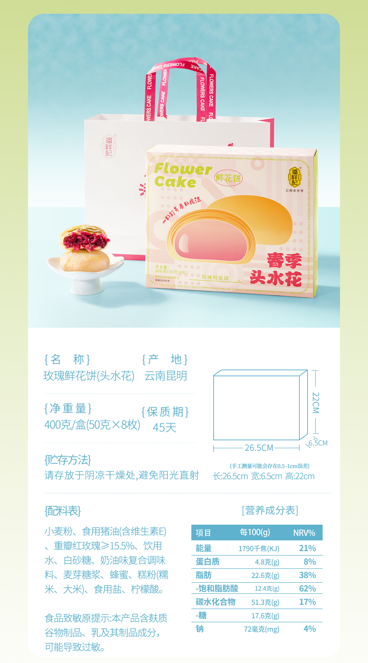 潘祥记官方旗舰店春季[头水玫瑰鲜花饼]