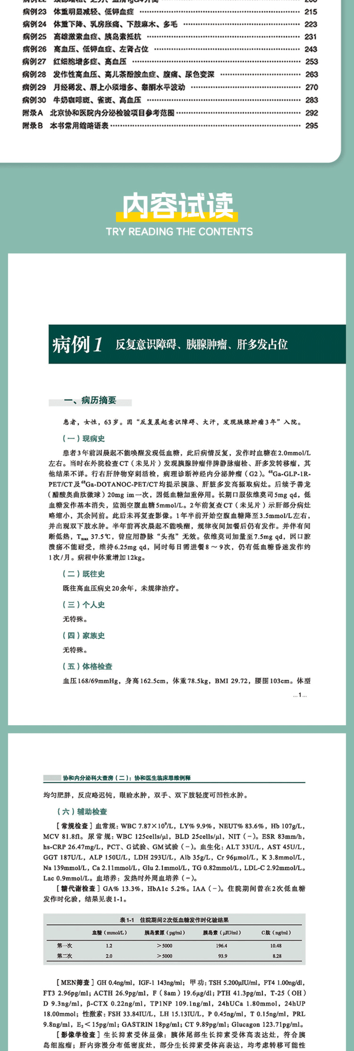 本书以北京协和医院内分泌科室诊疗的典型病例为主,涉及糖代谢疾病、骨代谢疾病、甲状腺疾病、肾上腺疾病等42个病例,很多病例均为国内*次报导。本书介绍内分泌科室常见疾病的诊疗思路,每个病例都包括病例摘要、病例分析和临床查房。病例摘要里介绍患者的病史、临床检查与诊疗经过,再通过病例分析提供临床诊疗思路。临床查房以临床问题提出和回答形式介绍此类疾病的来龙去脉。虽然是围绕内分泌疾病的查房,但临床问题却涉及各相关科室,整本书体现了面对疑难病症,既整合科室全部力量,又联盟相关科室力量,为内分泌科的各年资医生甚至内科各科室医生提供了很好的临床经验与思维方法。