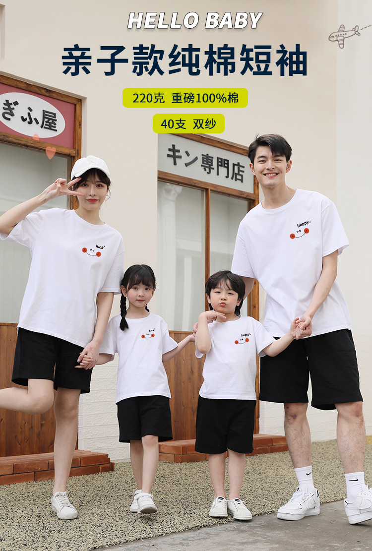 【甜蜜亲子档 百搭舒适】重磅220克!2024亲子装纯棉短袖全家装夏一家三口四口母女装亲子t恤