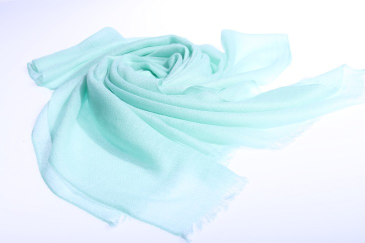 这款方巾采用了水溶工艺,使得整条方巾较一般织物更加蓬松、顺滑,同时利用更高的纺织数,使得方巾更加轻薄。