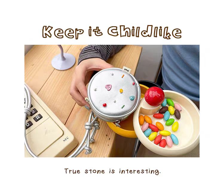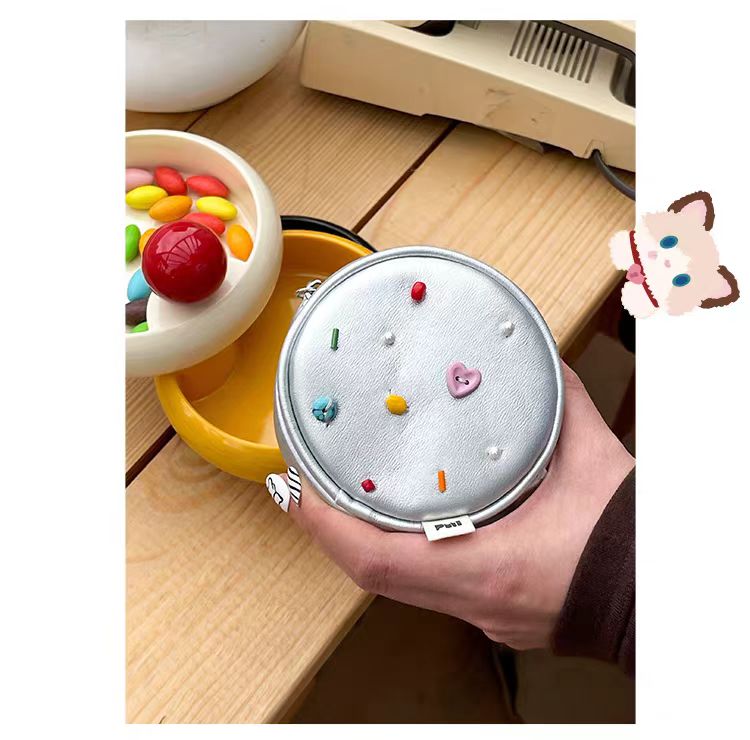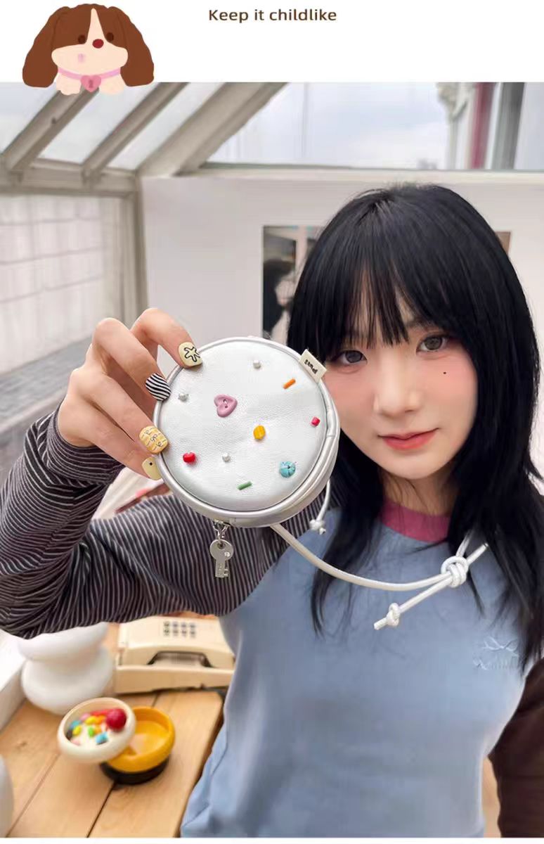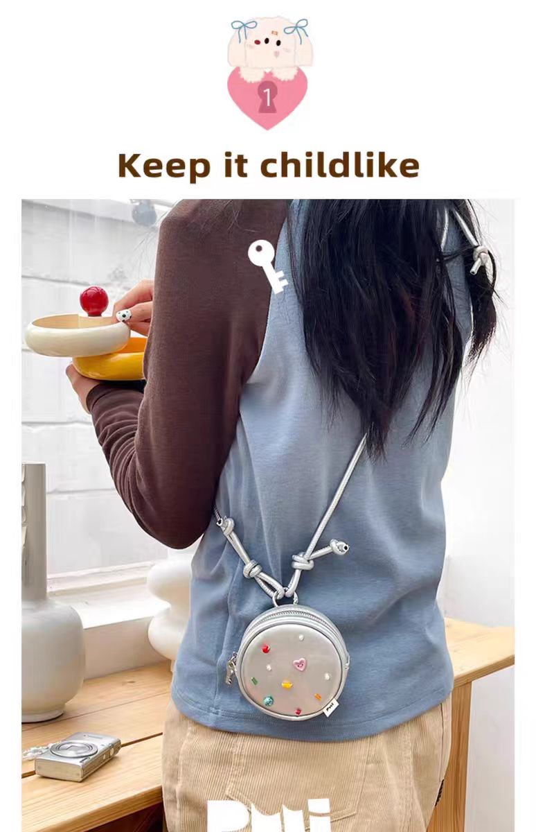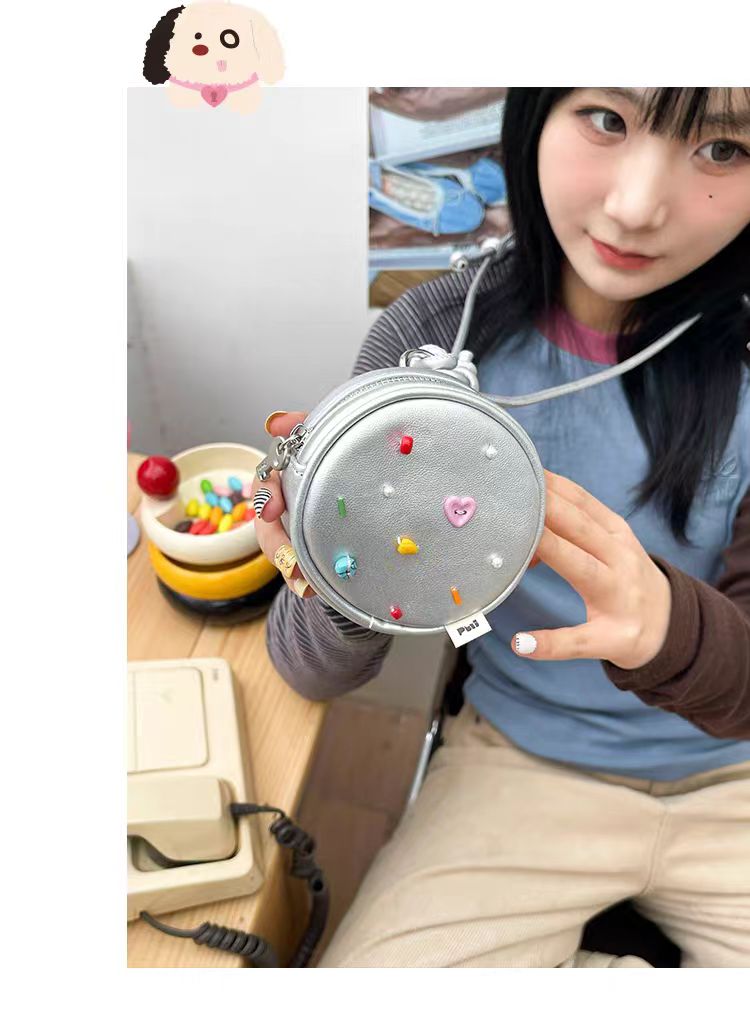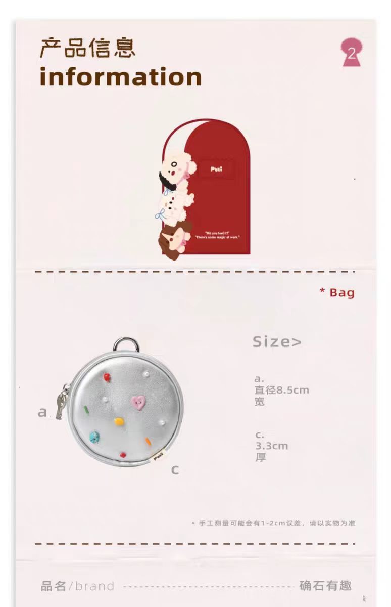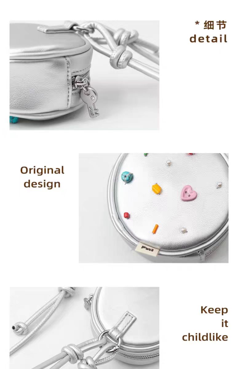 4楼Eubelle欧蓓 puui新款迷你挂脖零钱包银色皮质 斜挎包耳机包硬币包ins 活动价:128元