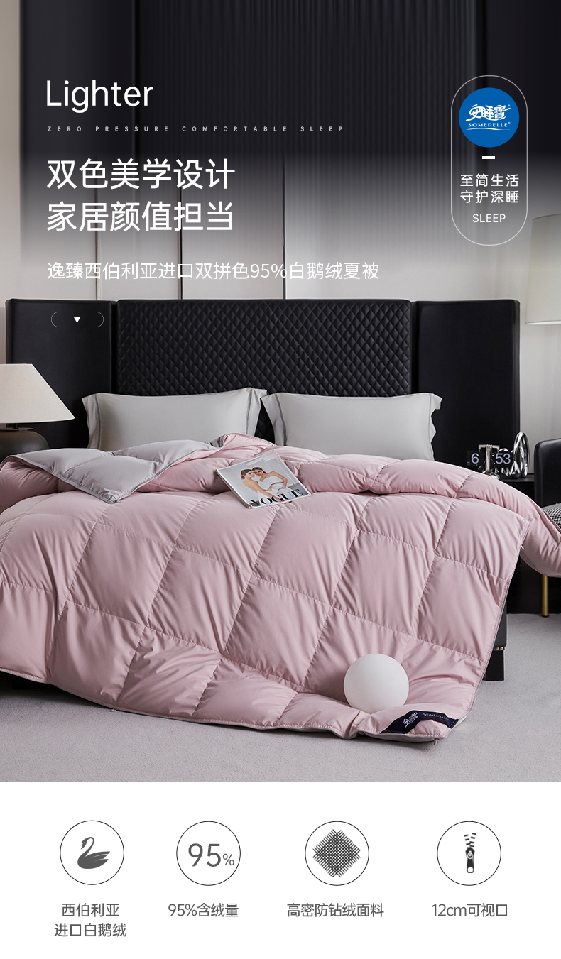 【春上新】10楼 安睡宝 逸臻西伯利亚进口双拼色95%白鹅绒夏被 吊牌价4599-5999元 活动价999-1399元