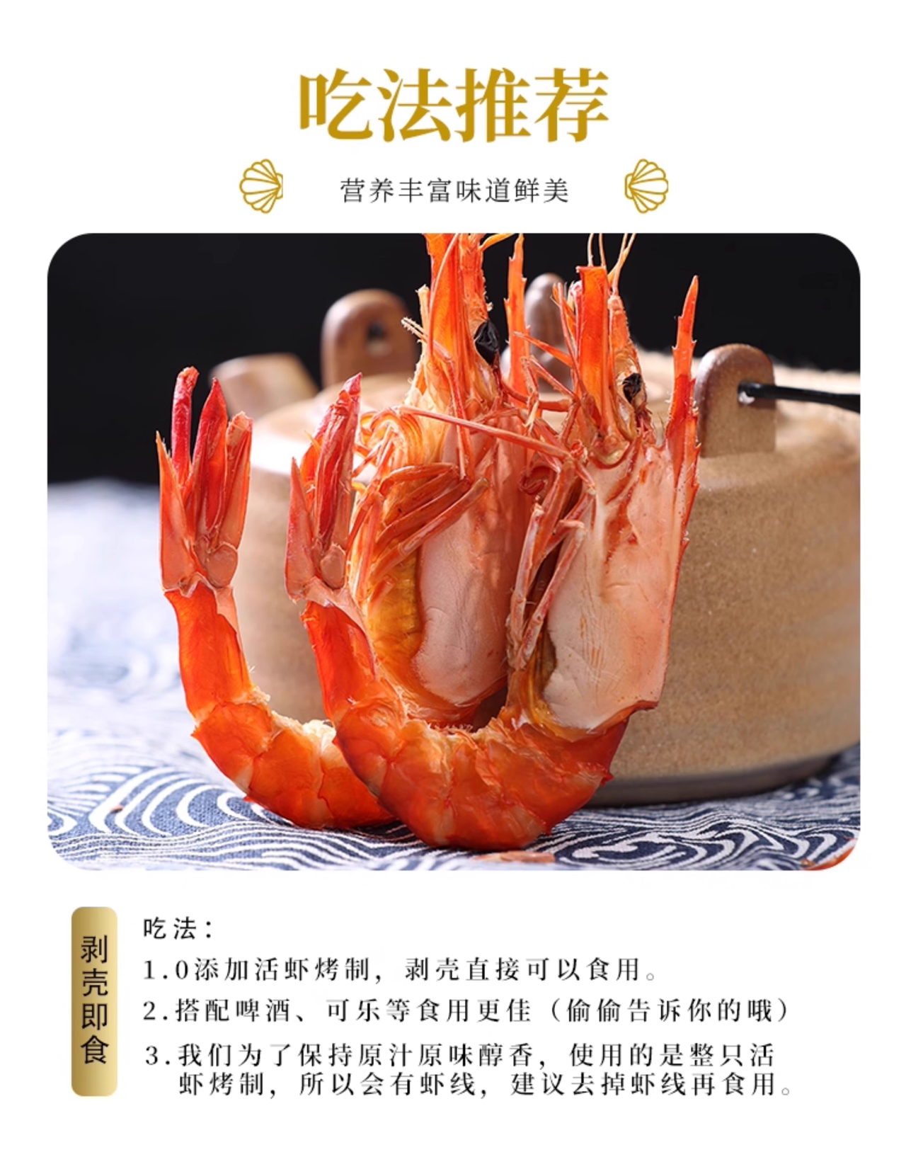 渔民当日捕捞,活虾现煮,鲜活恒温烘烤——让咸鲜的海风与“温暖的阳光”,慢慢逼出它的精华。