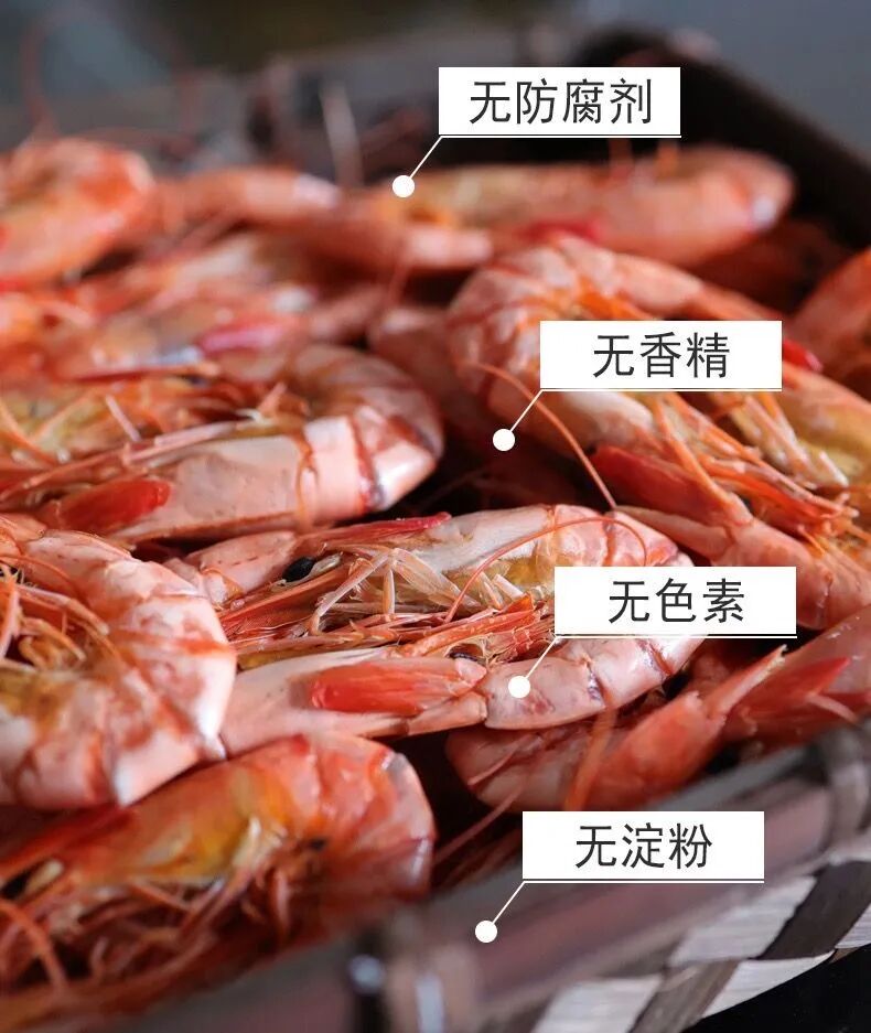 虾有烘干和日晒两种制法。日晒,太难控制了,天气、其他微生物随时会来品尝这一美味。为了大家安全,这款虾干采用了鲜活恒温烘烤。