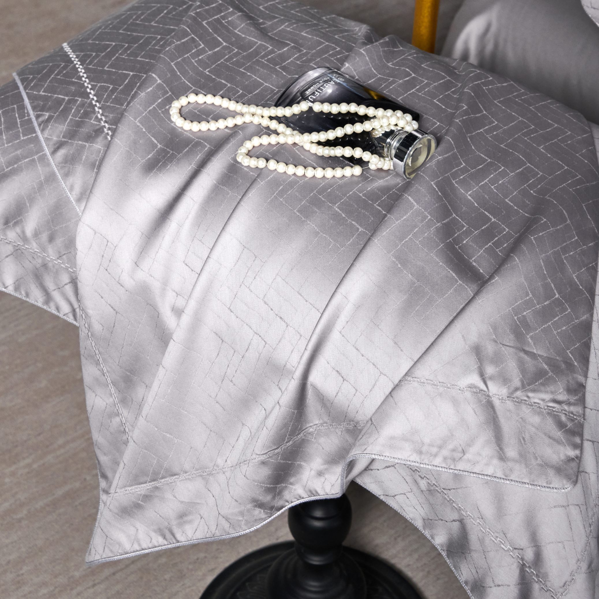 精选新疆长绒棉面料,纱线细腻如丝,触感柔滑如糯,四季兼宜,透气锁温。精致暗纹提花 突出纹理,轻奢质感,宽边搭配滚绳,颜色层次分明,整体清新淡雅,不失高级感。卧室里面的一股清流,提升品质。
