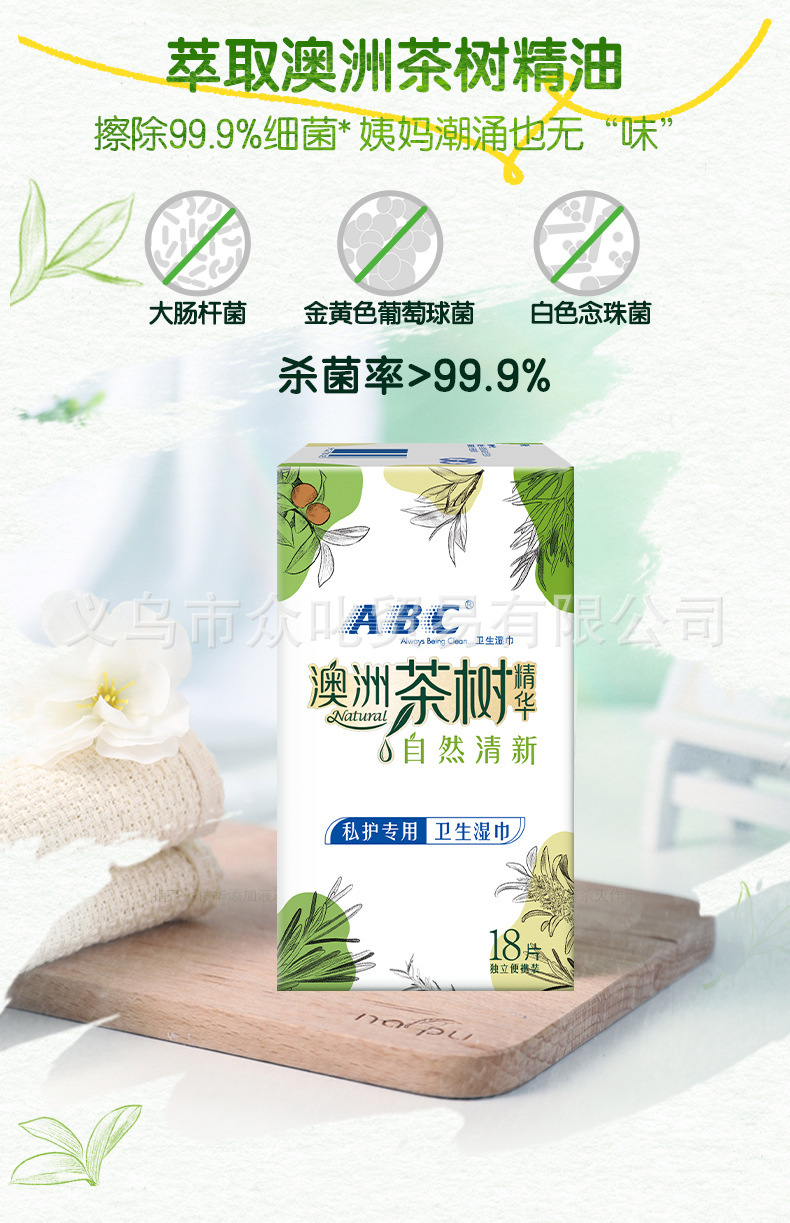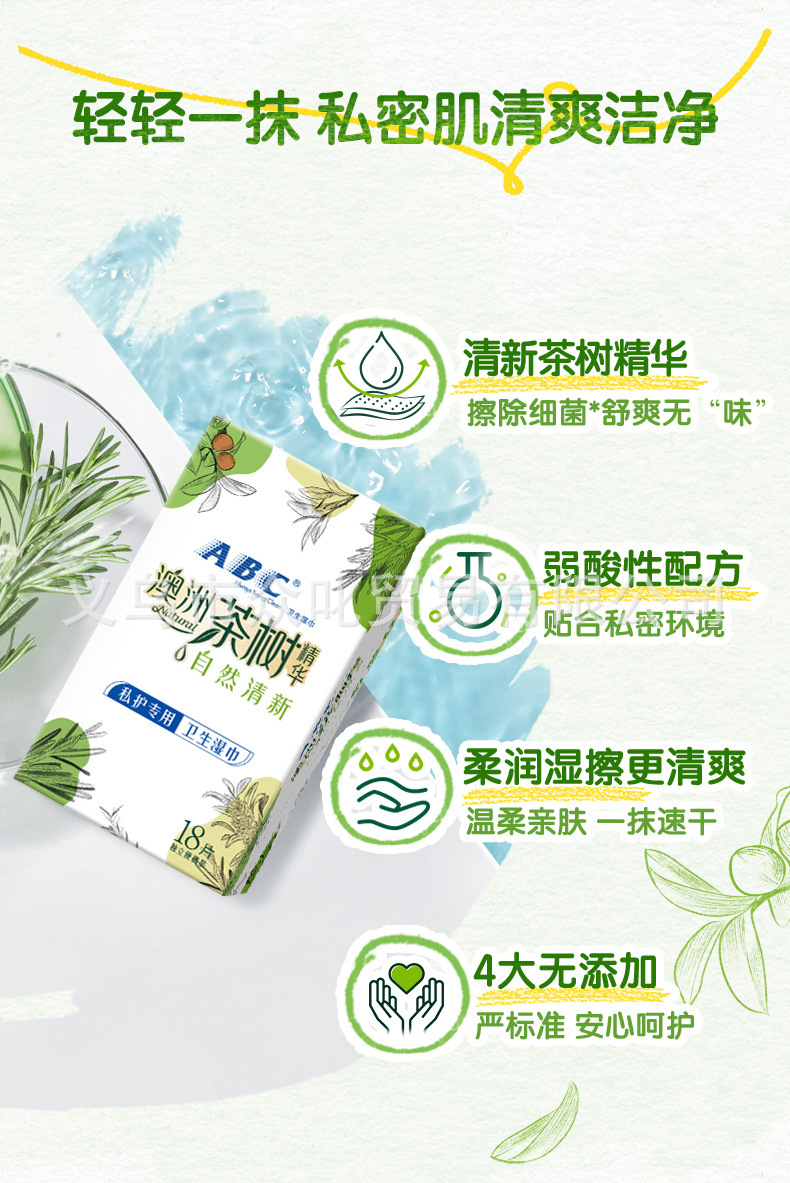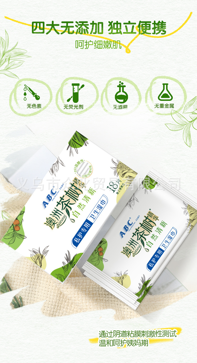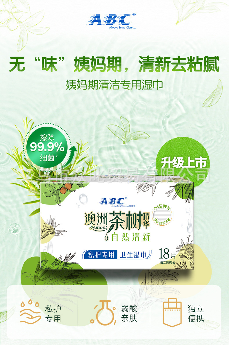 ABC湿巾180*160mm*18片独立包装 女性私处洁阴护理消毒杀菌成人湿厕纸经期房事后便携