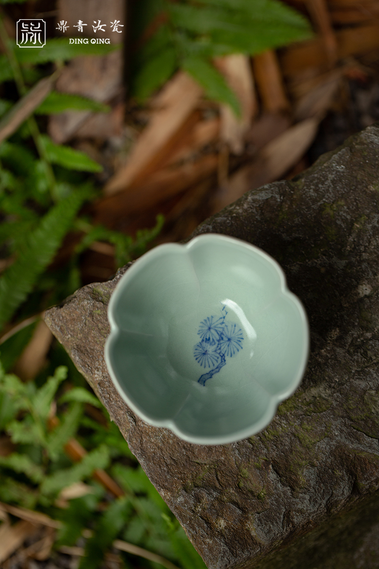 问鼎留青柴窑天青竹律杯(青花山水)