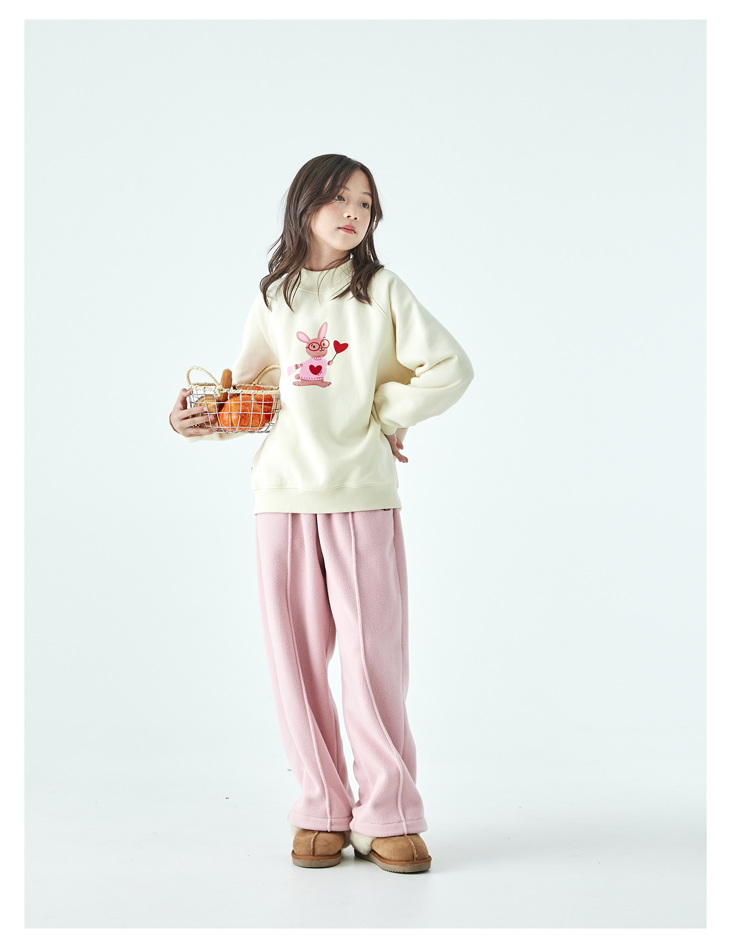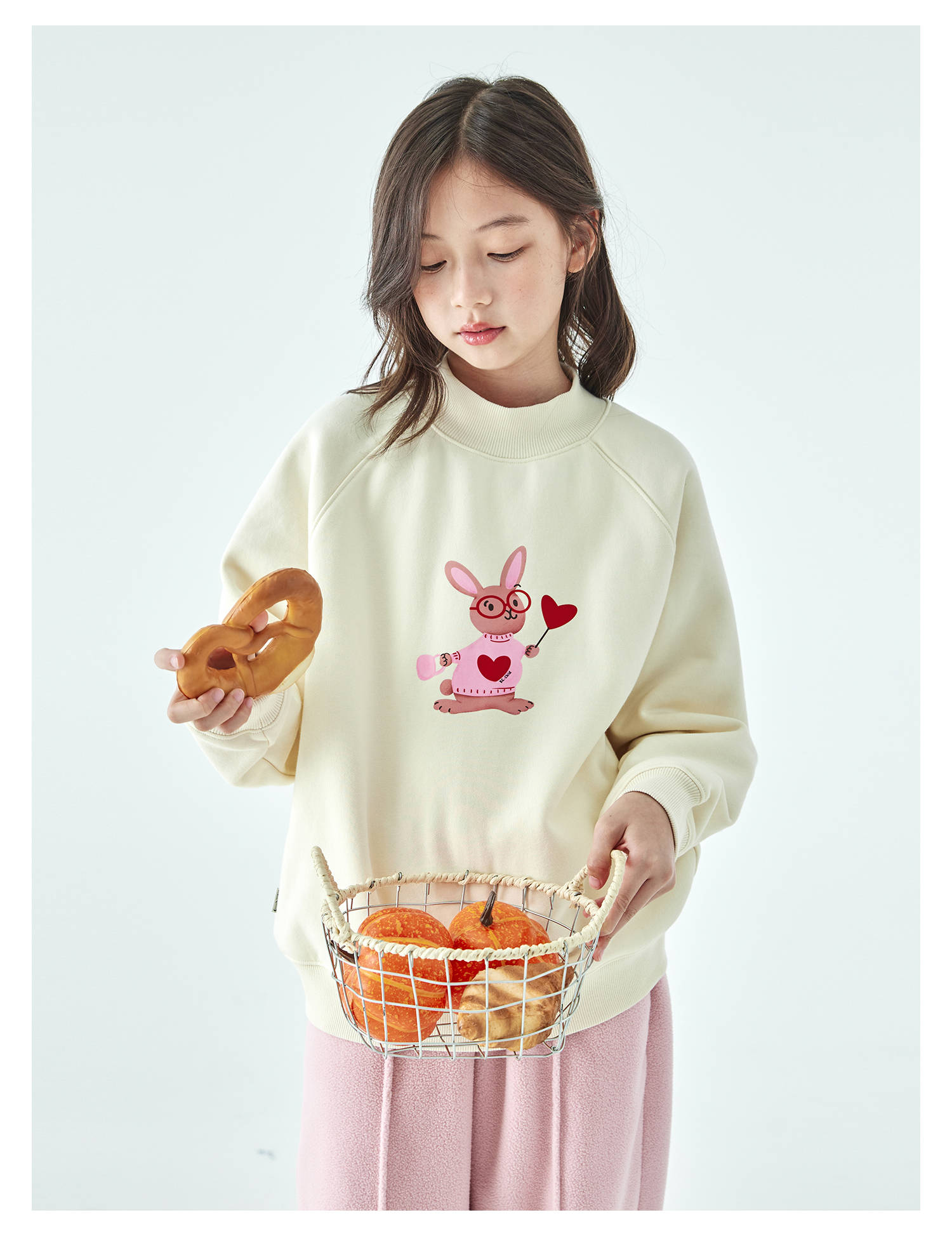 棵初25年秋冬新款亲子中大女童半高领卫衣恒温抗静电小兔印花上衣