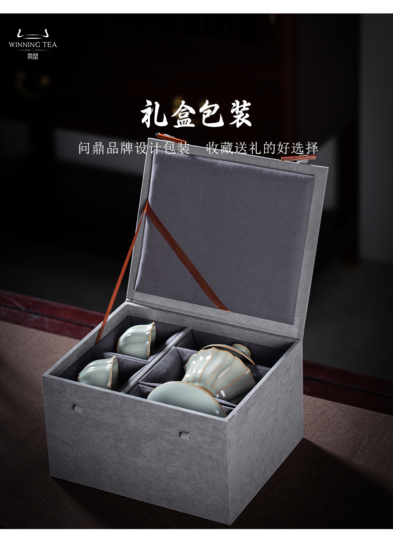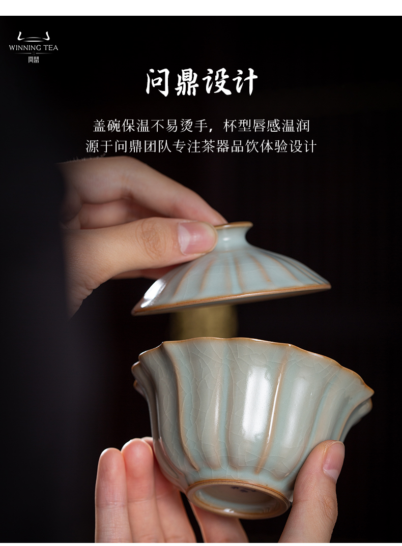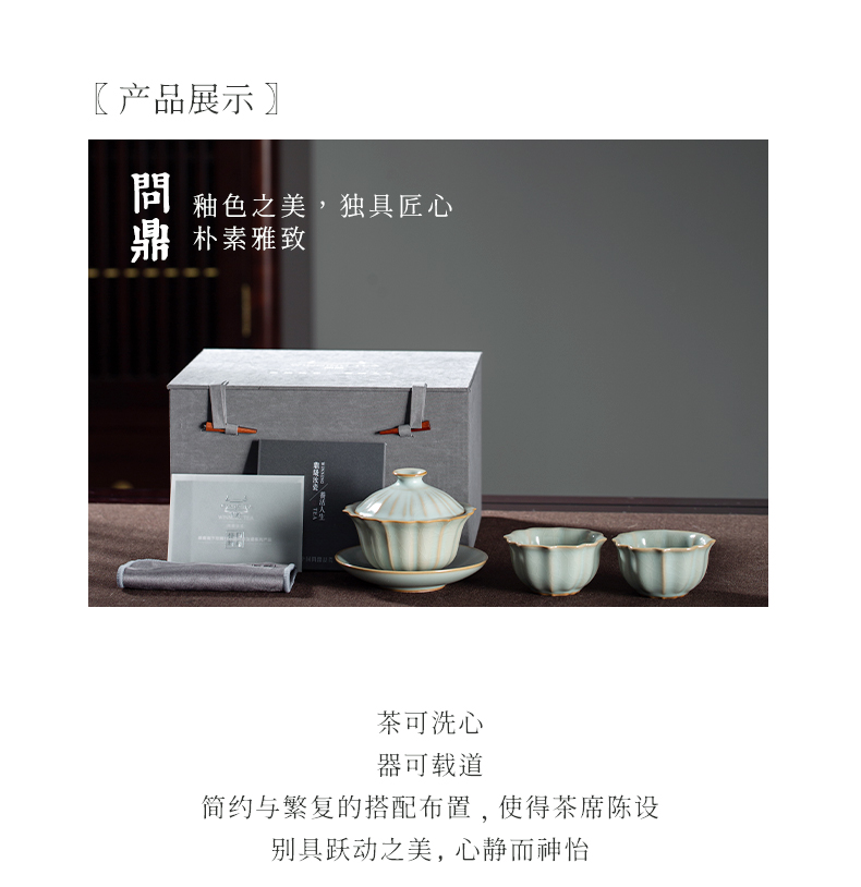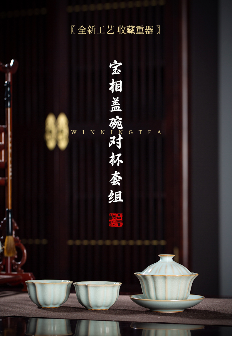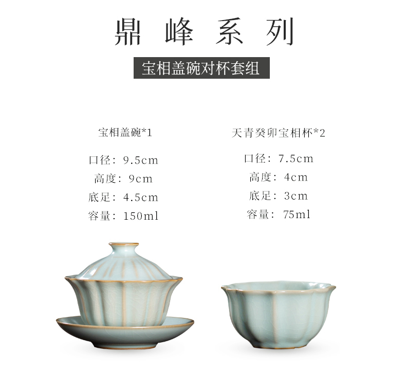问鼎汝瓷鼎峰系列天青癸卯宝相盖碗对杯套组