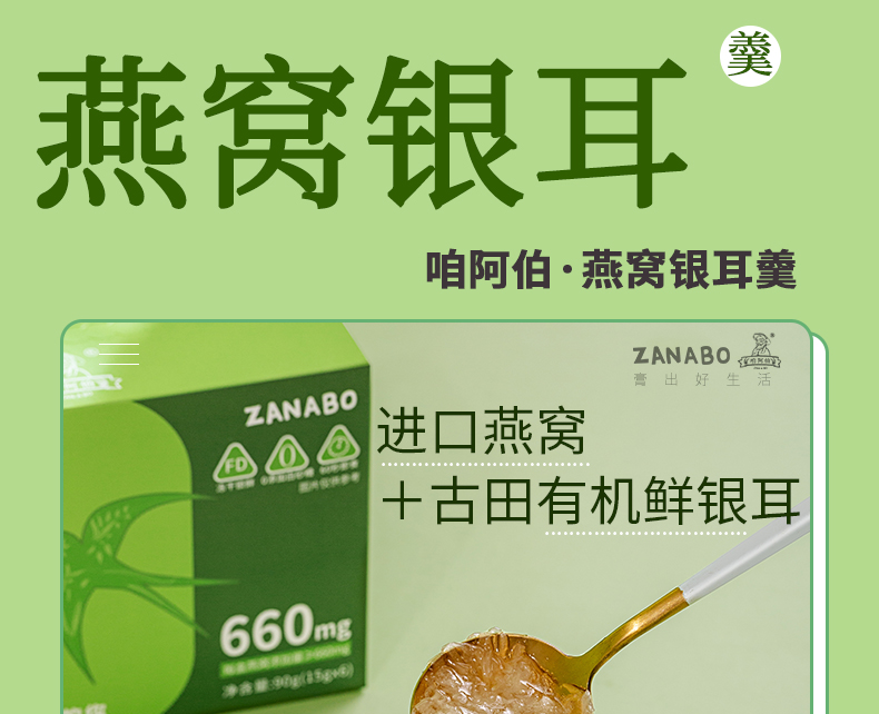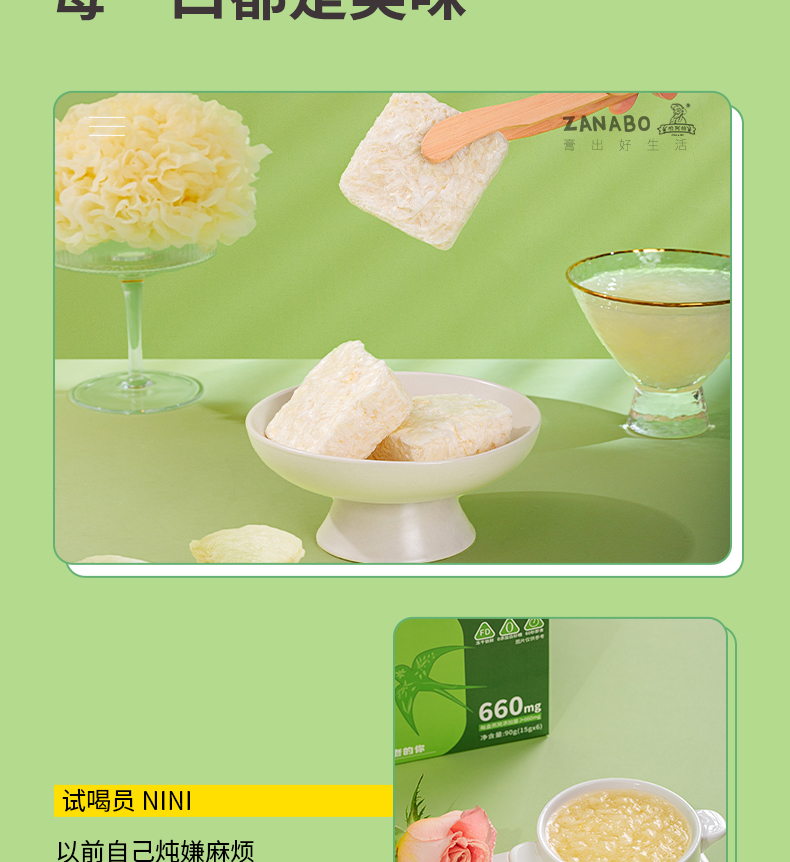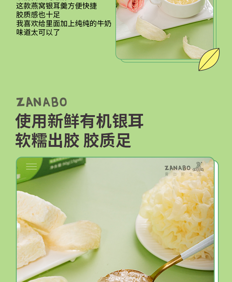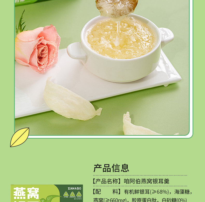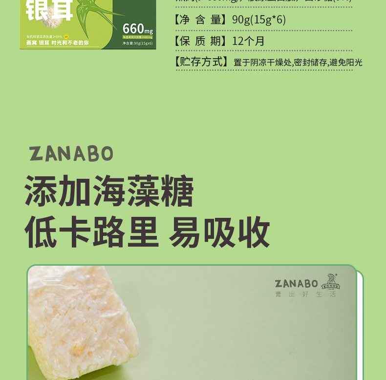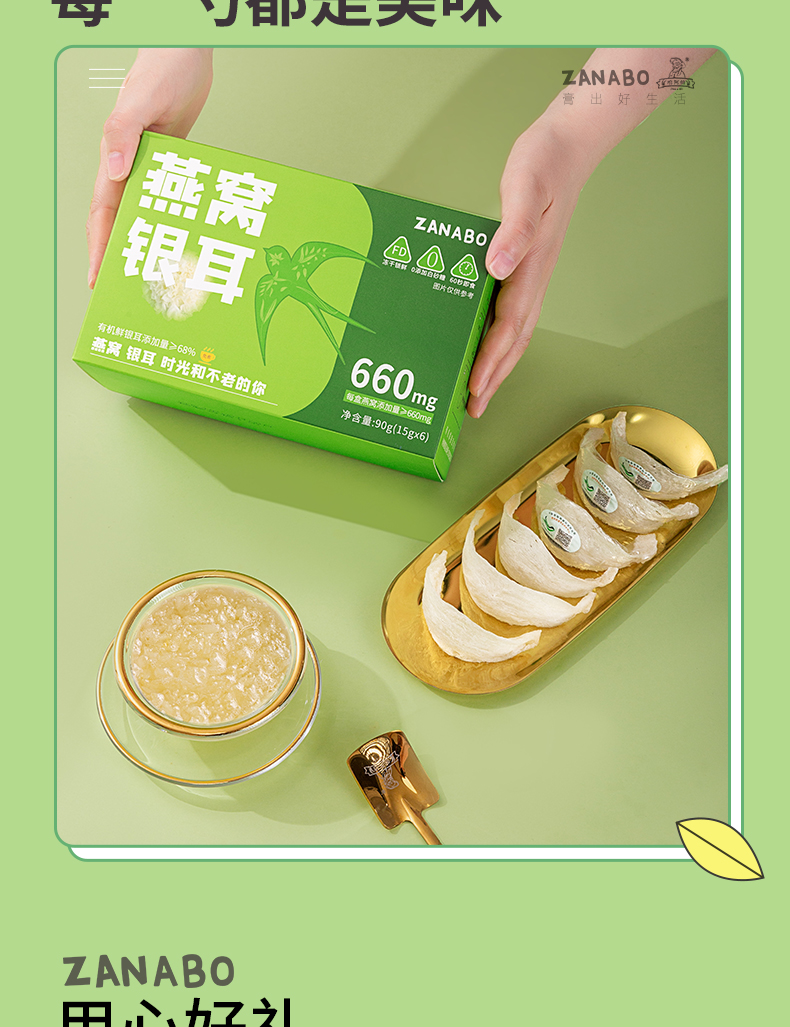 ZANABO咱阿伯燕窝银耳羹90g/盒(内含6袋) 燕窝含量600g含胶原蛋白肽