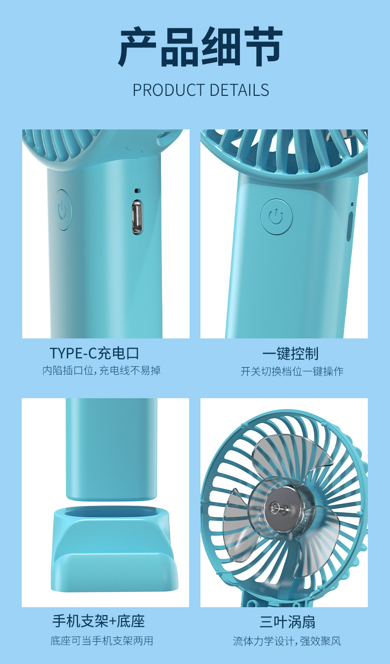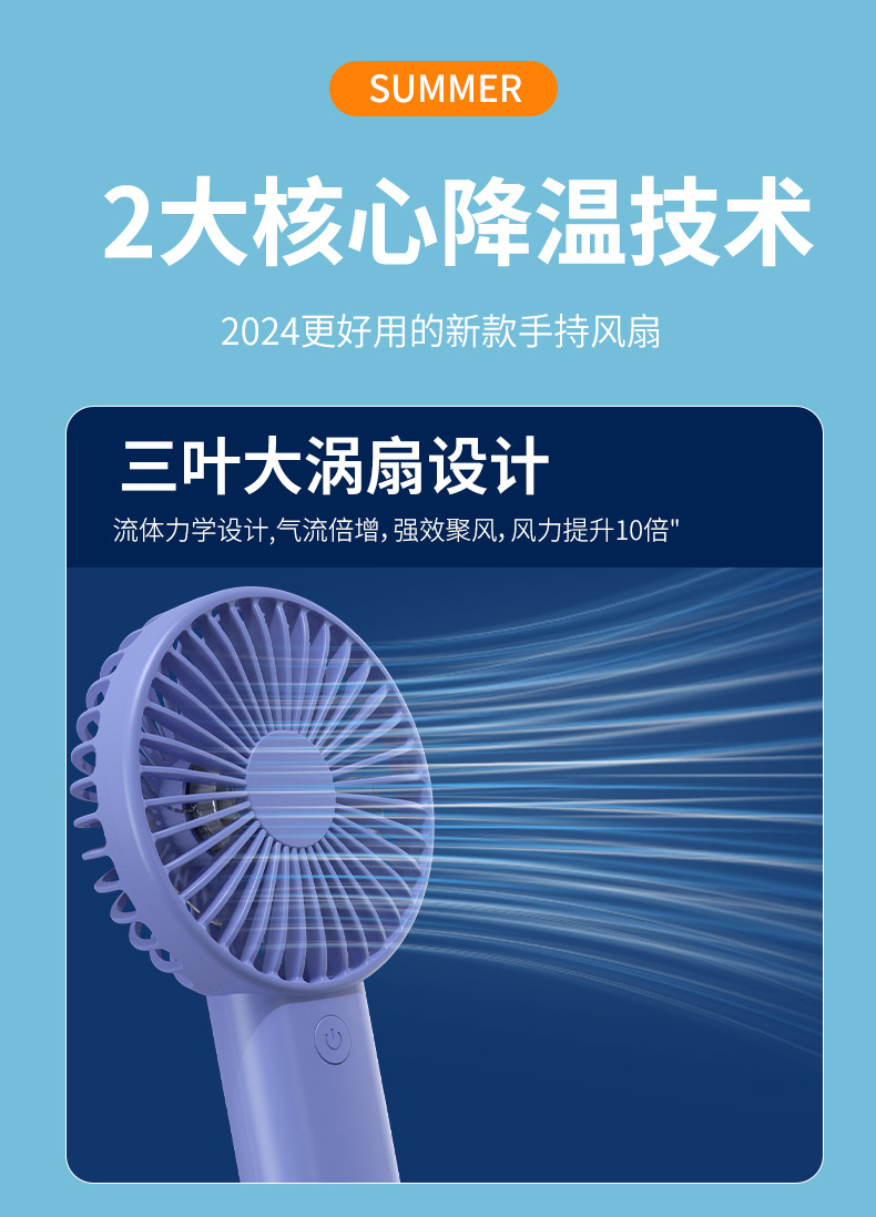 【静音大风力❗️手持小风扇】轻巧便捷手持/立式两用,三档大风强力续航,桌面办公便携式风扇L