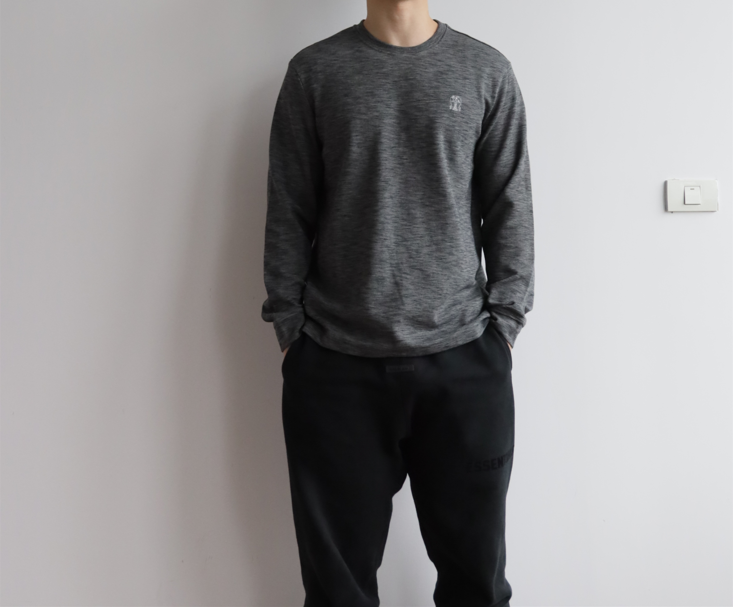 B.C 细华夫格 圆领长袖薄卫衣