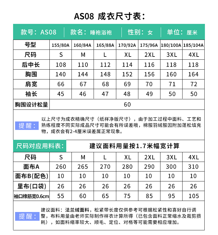 裁缝学苑AS08 珊瑚绒睡袍纸样睡衣女装家居服法兰绒浴袍打版裁剪