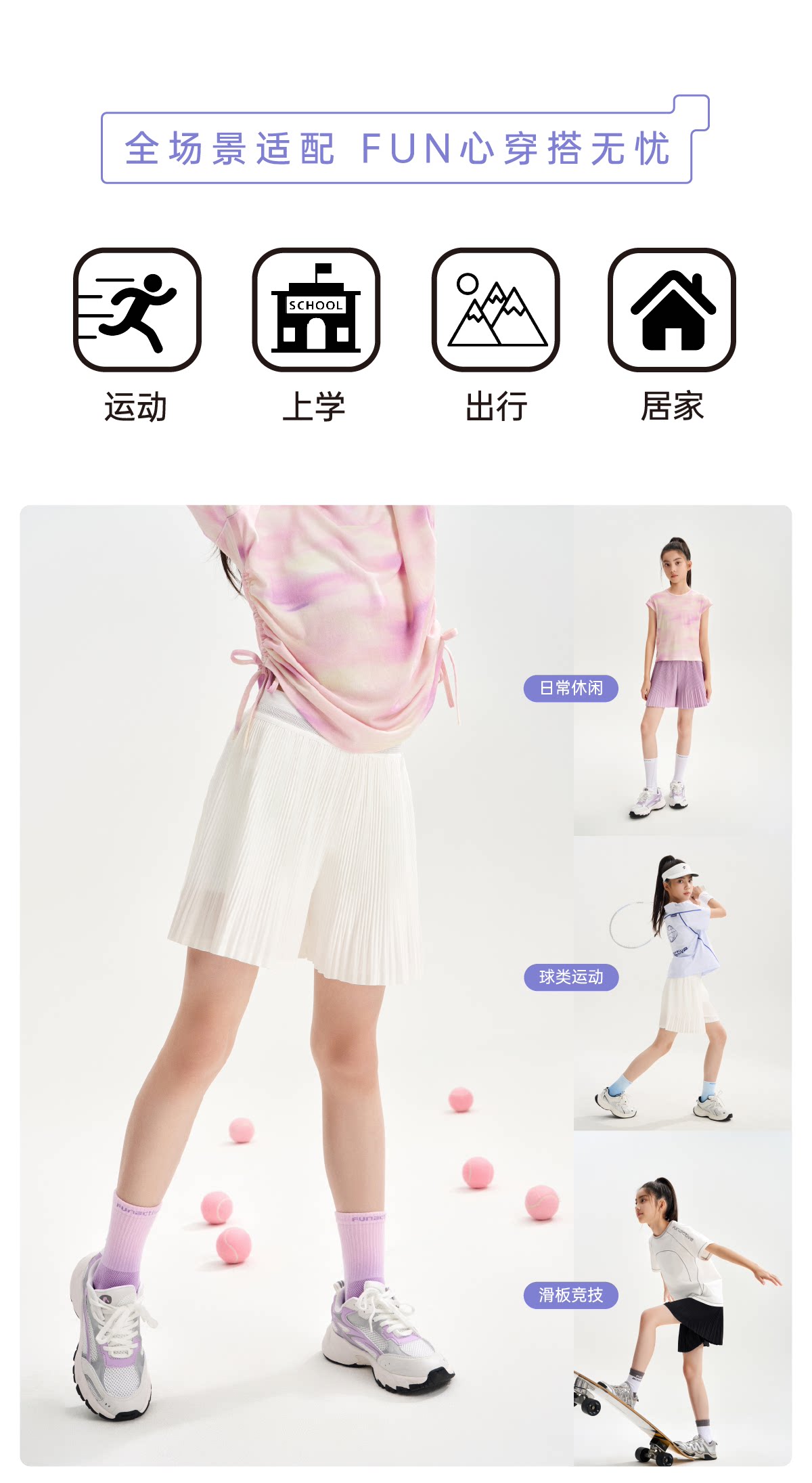 【26春上新】funactive女童网球短裤儿童运动裙裤亲肤透气短裤F1GK60337