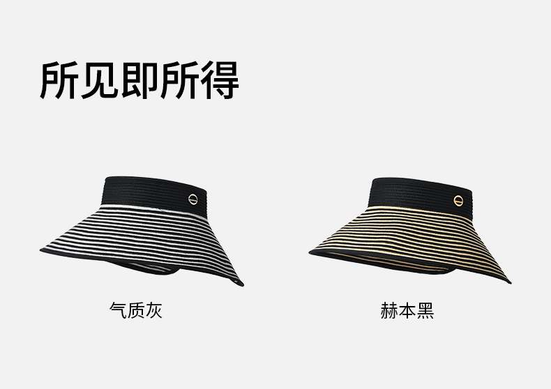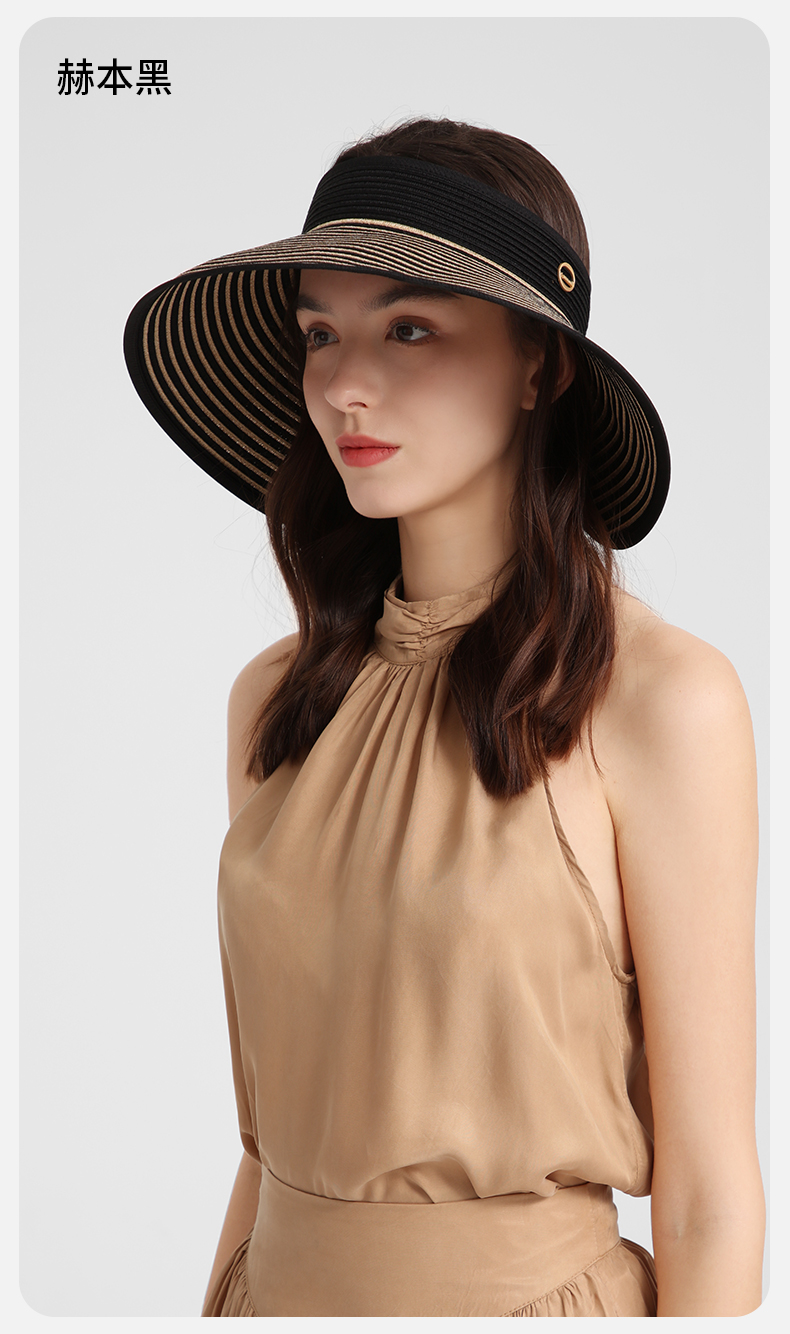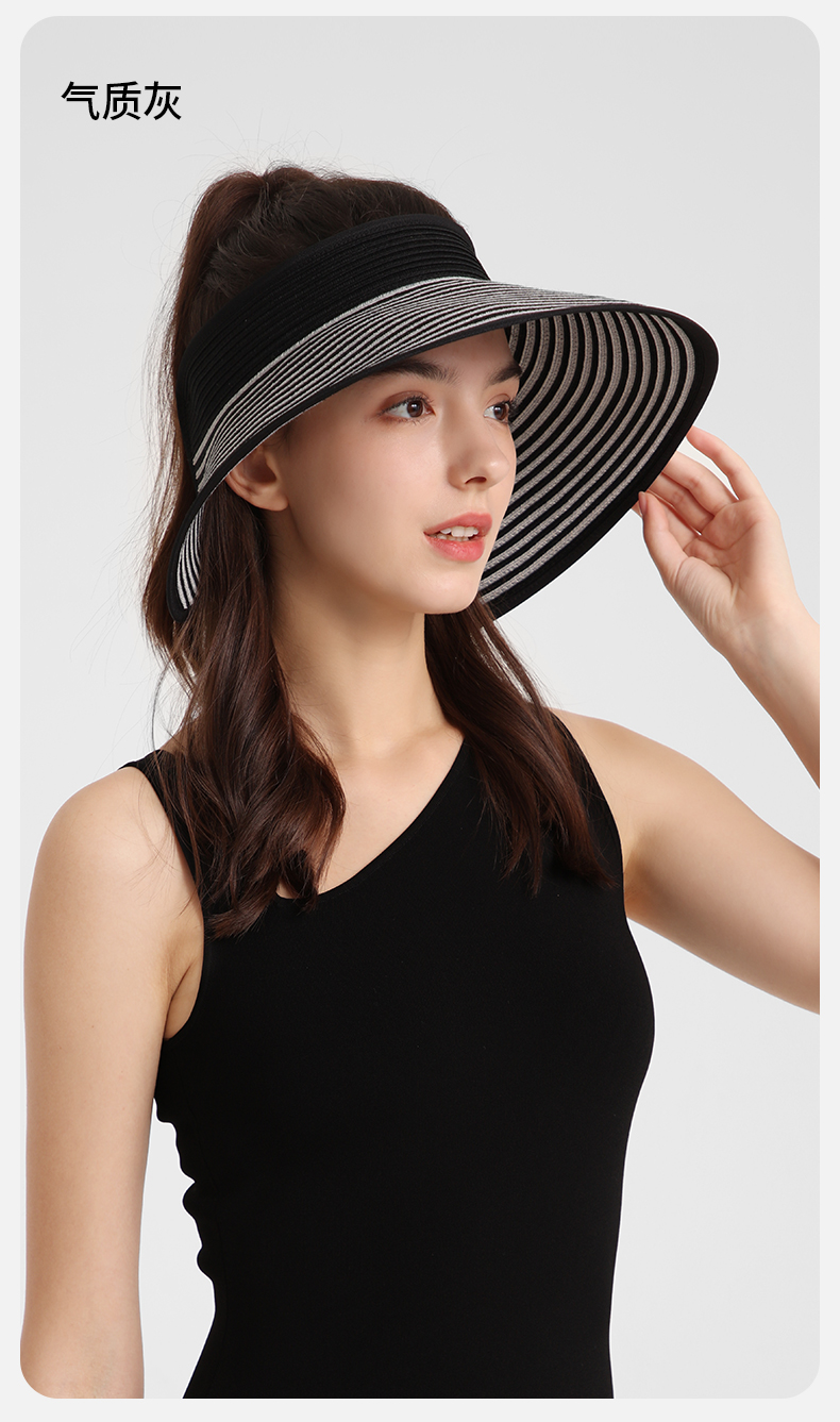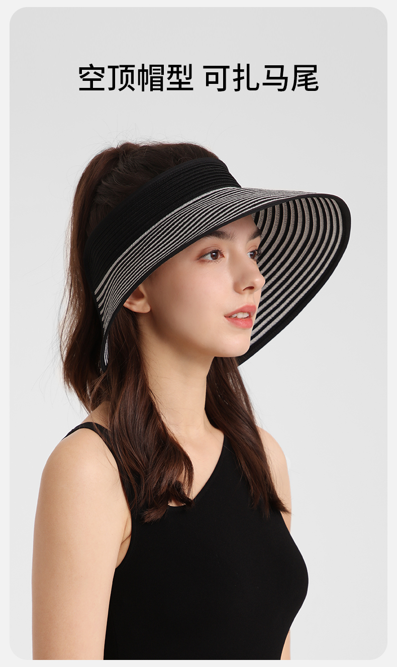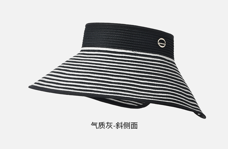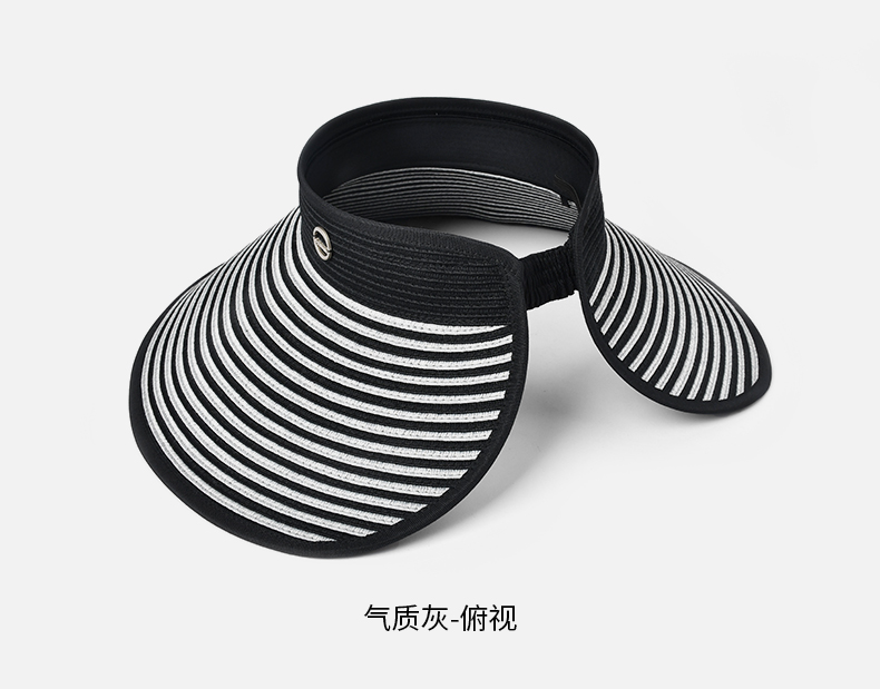 卡蒙百搭黑白条纹空顶防晒帽女夏沙滩速干透气可折叠遮脸遮阳帽KM-6063