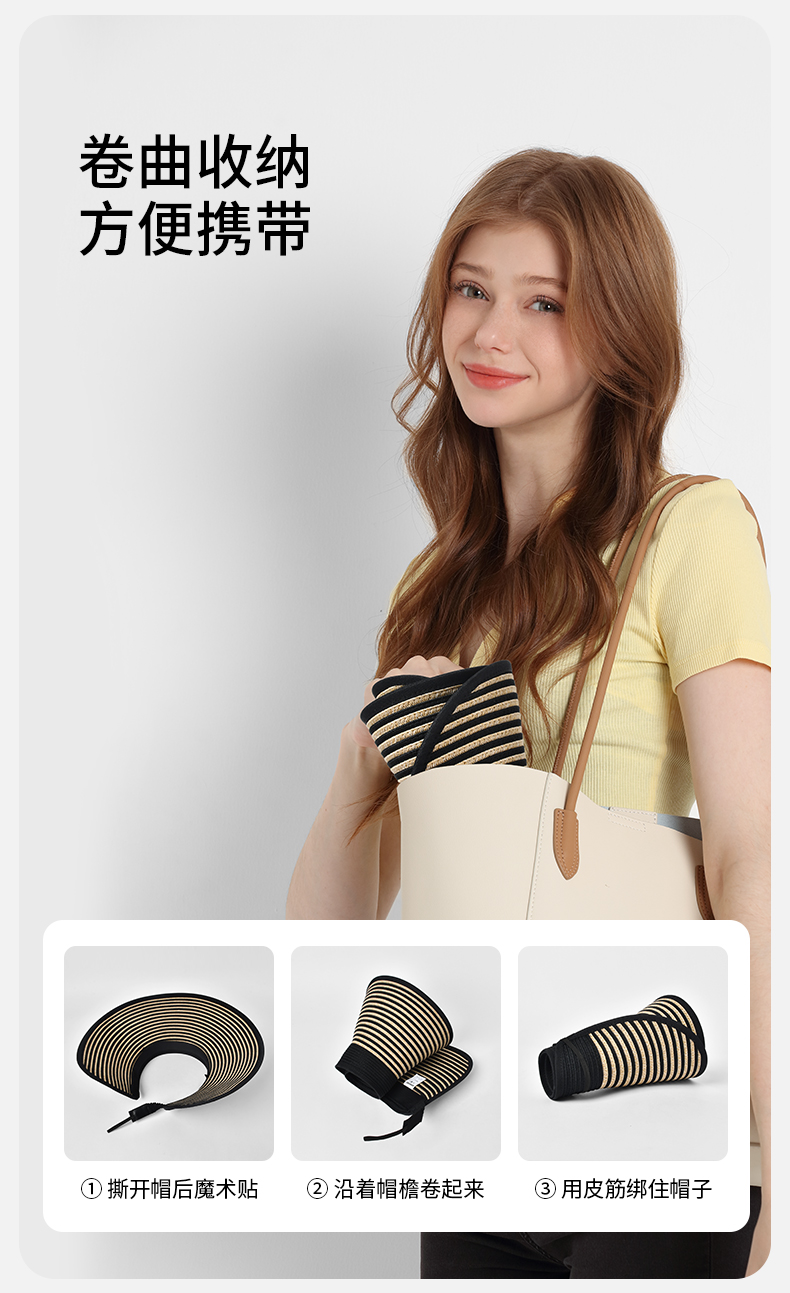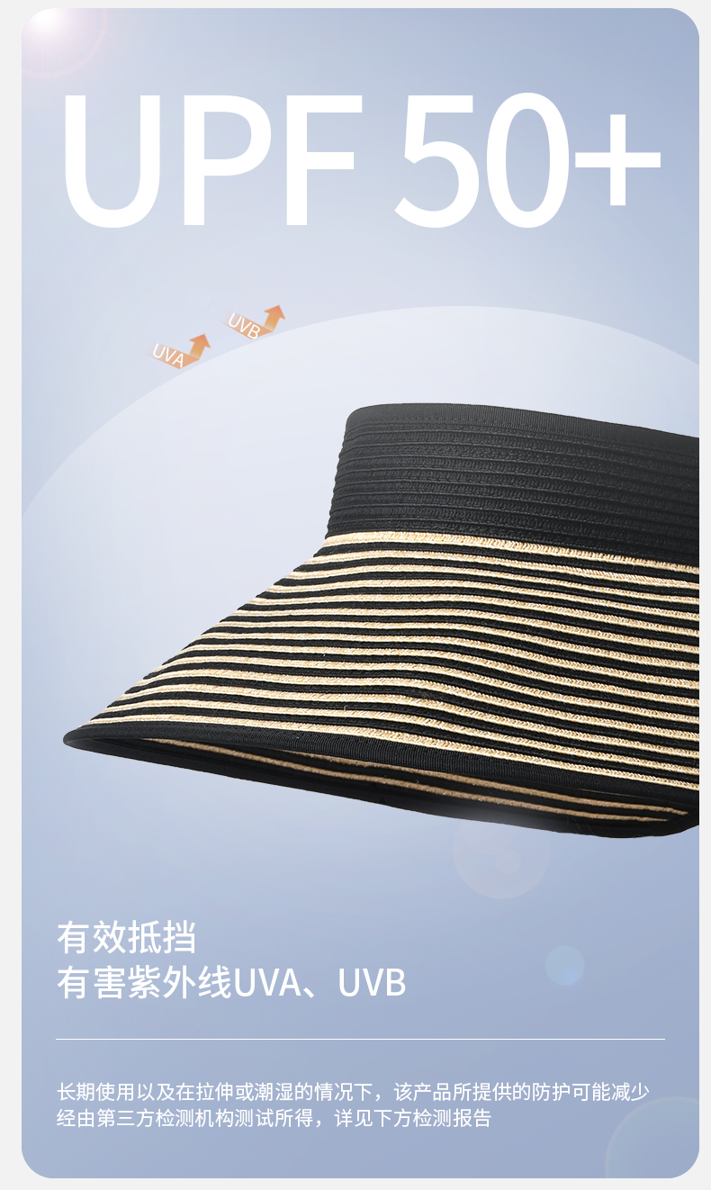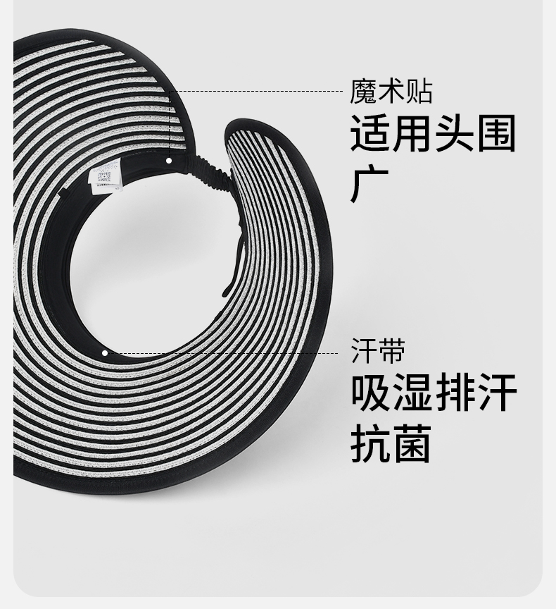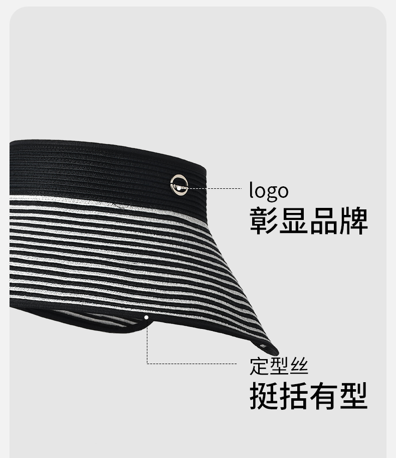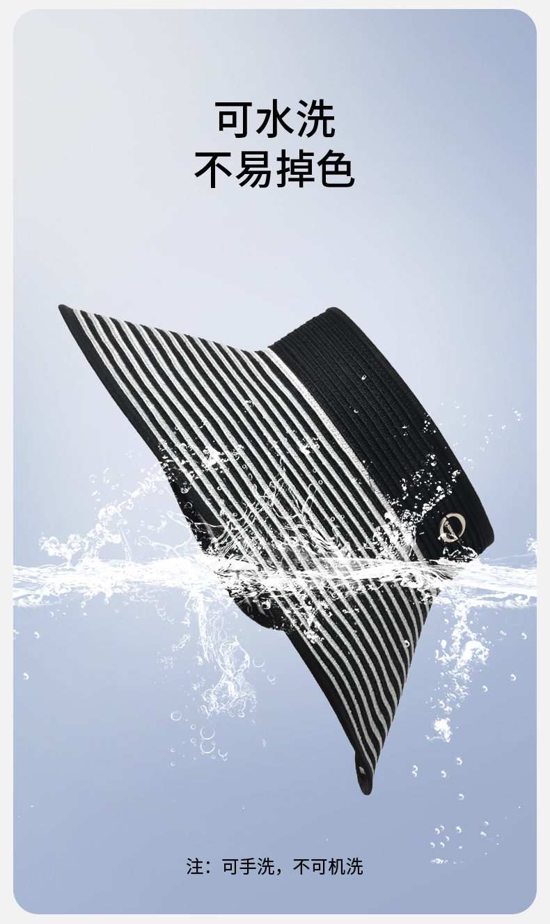 卡蒙百搭黑白条纹空顶防晒帽女夏沙滩速干透气可折叠遮脸遮阳帽KM-6063
