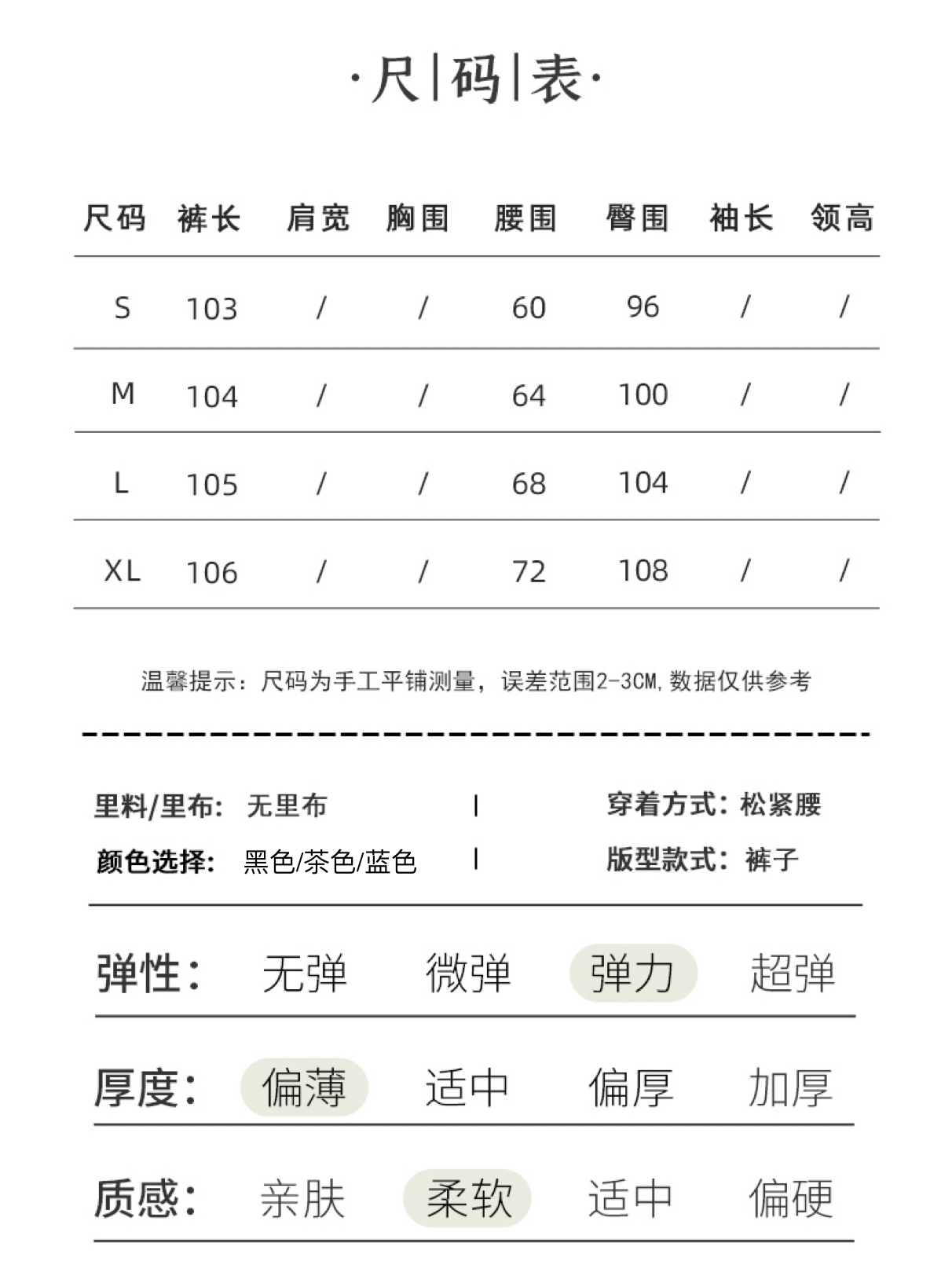 腰部设计:版型宽松,腰头弹力松紧设计,不挑身材,不勒腰,舒适度爆表!松紧腰还能修饰腰部线条,遮挡小肚子,修饰出纤细小蛮腰。