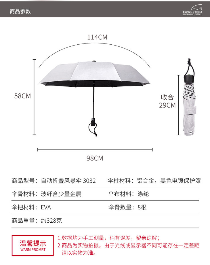 德国EUROSCHIRM欧赛姆风暴伞折叠自动伞遮阳伞防紫外线伞3032