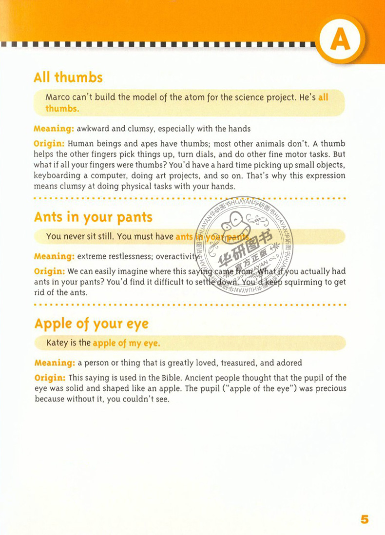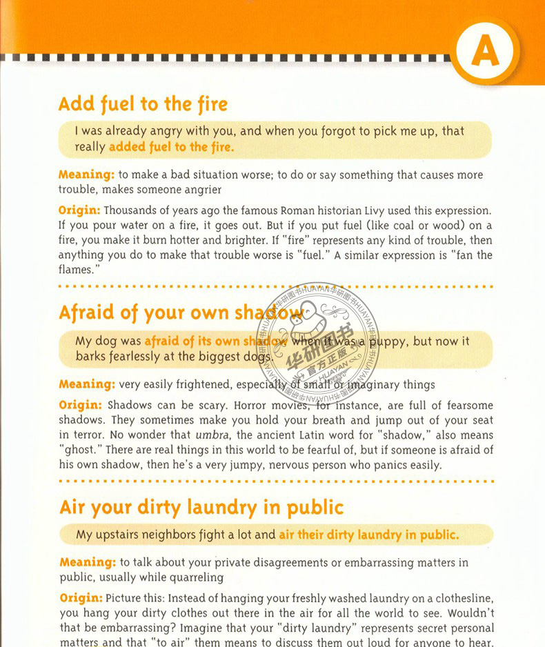 This book well explain the meanings and origins behind more than 700 idioms that you might hear or read in English every day. Our panel of teachers helped me choose the most commonly confusing idioms.