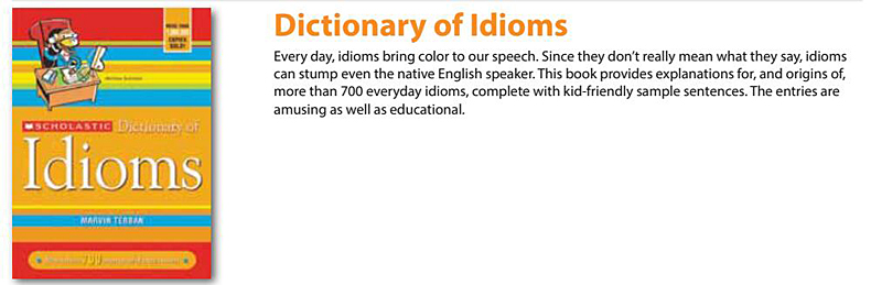 If you think idioms are a “tough nut to crack,” pick up the SCHOLASTIC DICTIONARY OF IDIOMS and they’ll soon be a “piece of cake.”