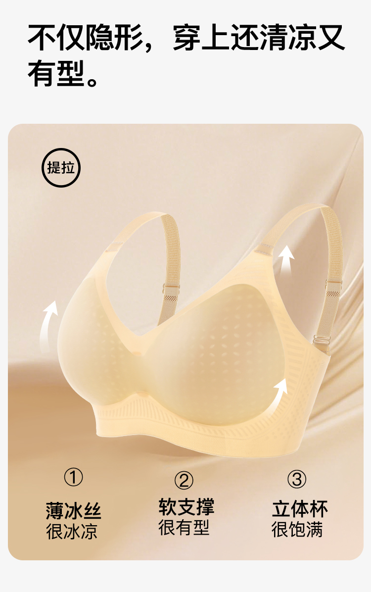 粉底液肤百搭无痕清凉透气内衣软支撑立体杯垫透气不闷热文胸罩一梦生香