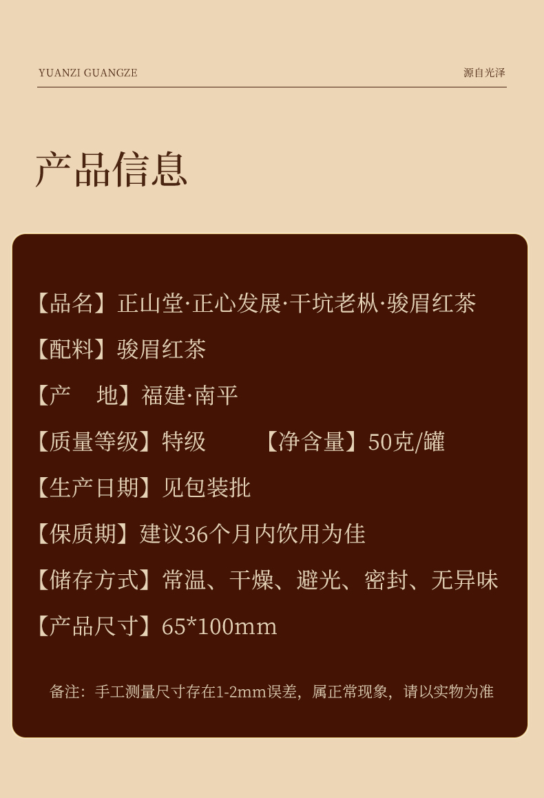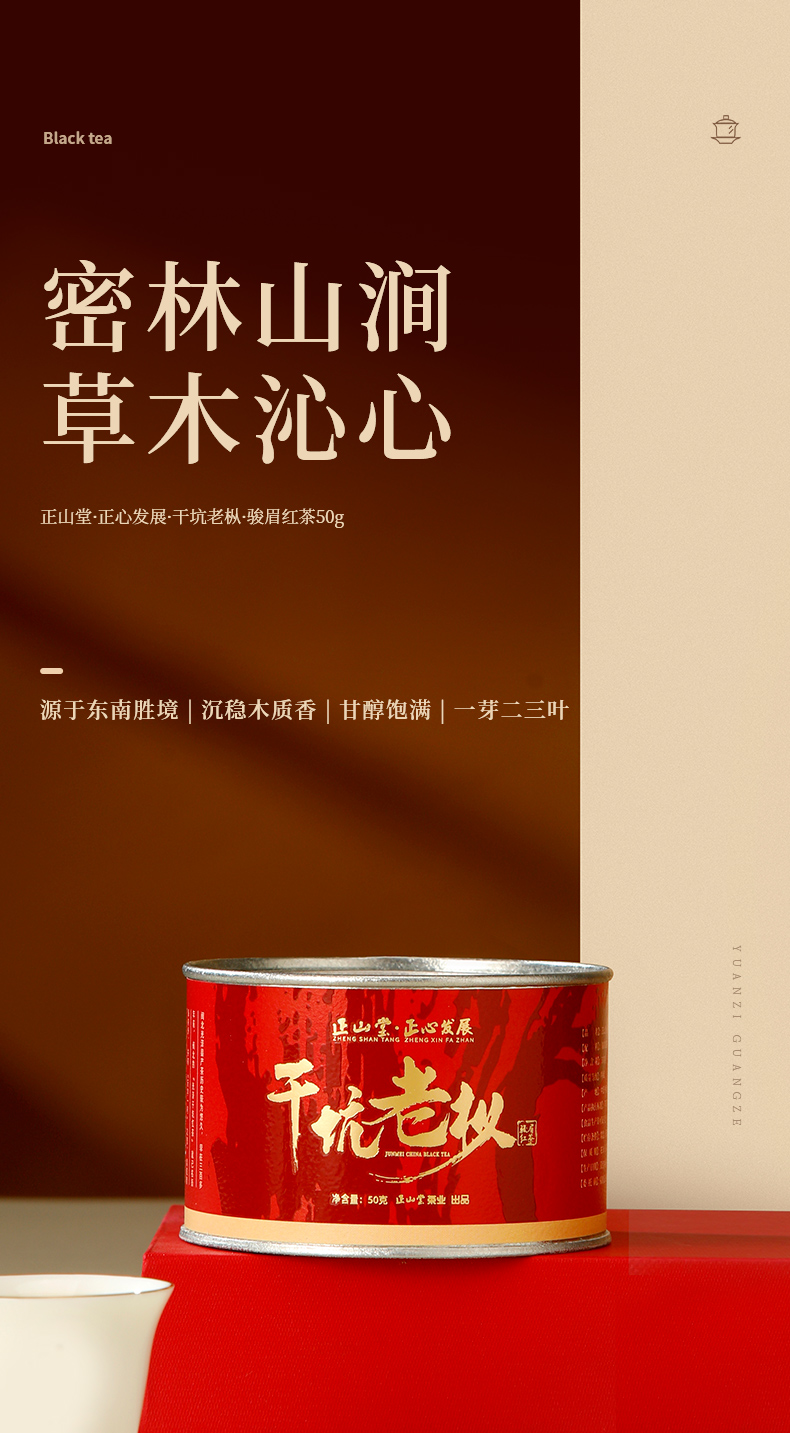 正山堂骏眉中国正心发展 干坑老枞 红茶正宗特级茶叶罐装50g