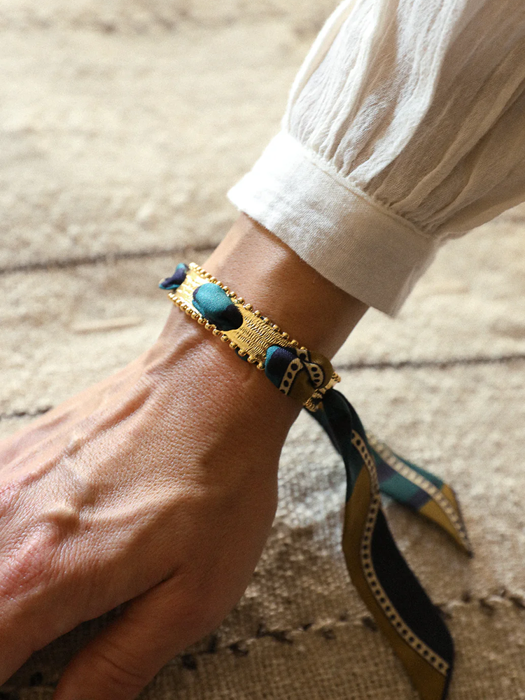 北京仓|AN-NEE-DIVA-棕绿色 夏帕诺瓦 2cm 丝巾手镯[法国设计师]