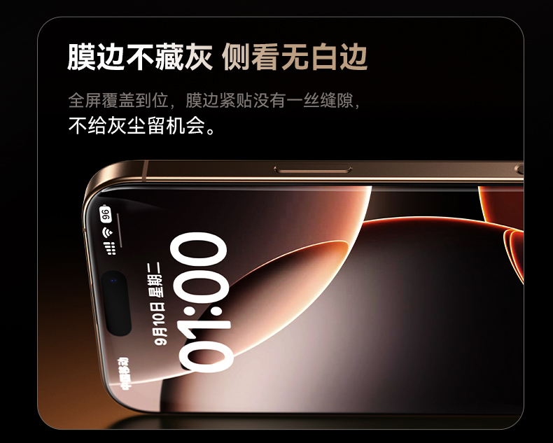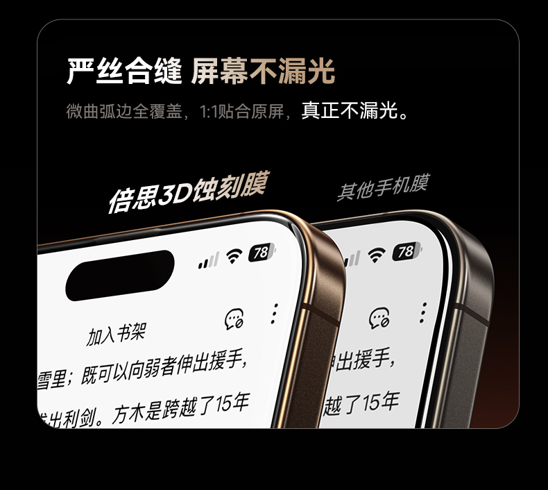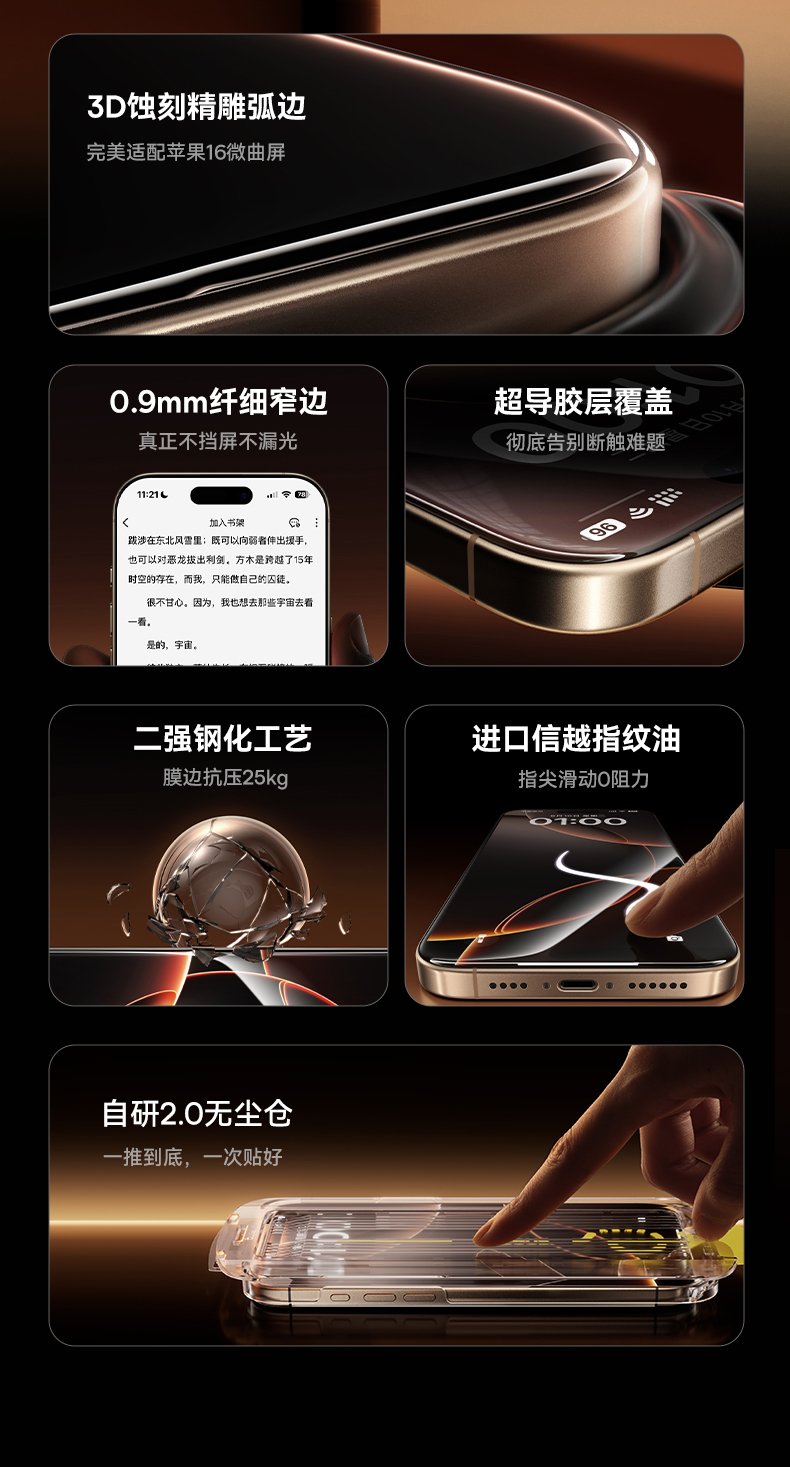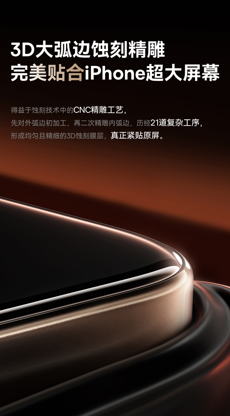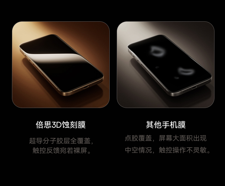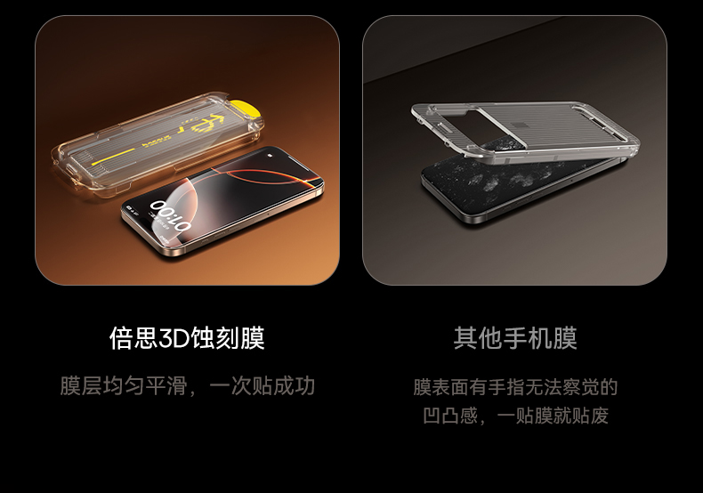 【69元3件】倍思 晶瓷系列 一体防尘 全屏 高清 蚀刻热弯钢化膜苹果16/17