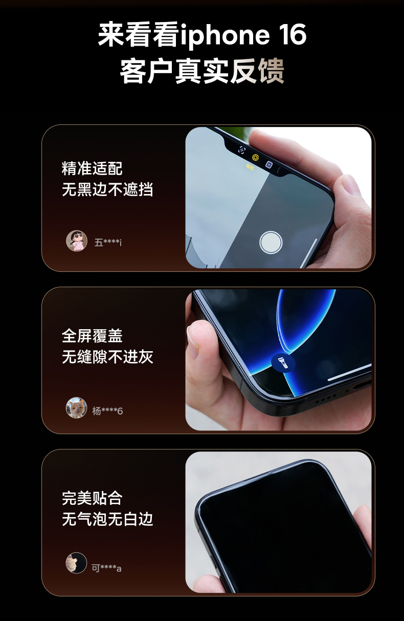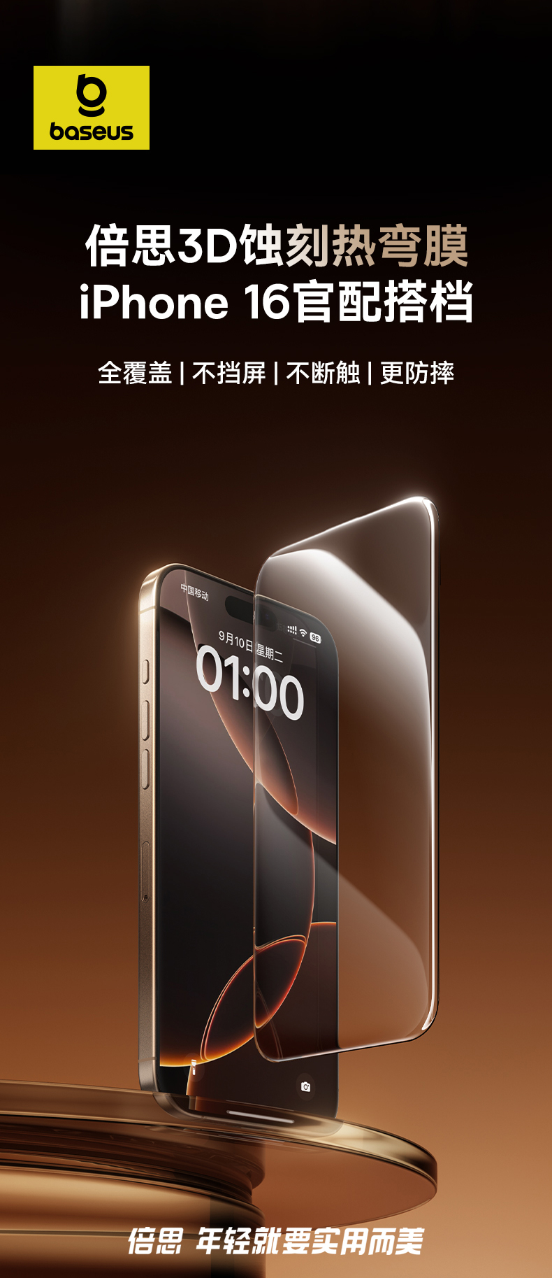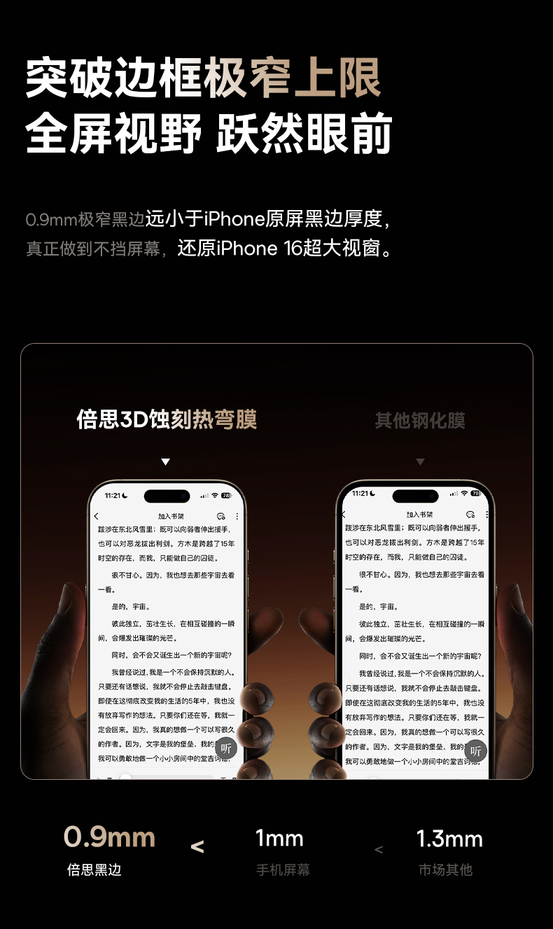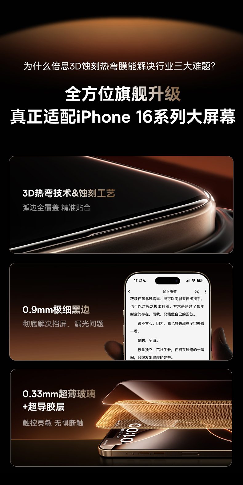【69元3件】倍思 晶瓷系列 一体防尘 全屏 高清 蚀刻热弯钢化膜苹果16/17