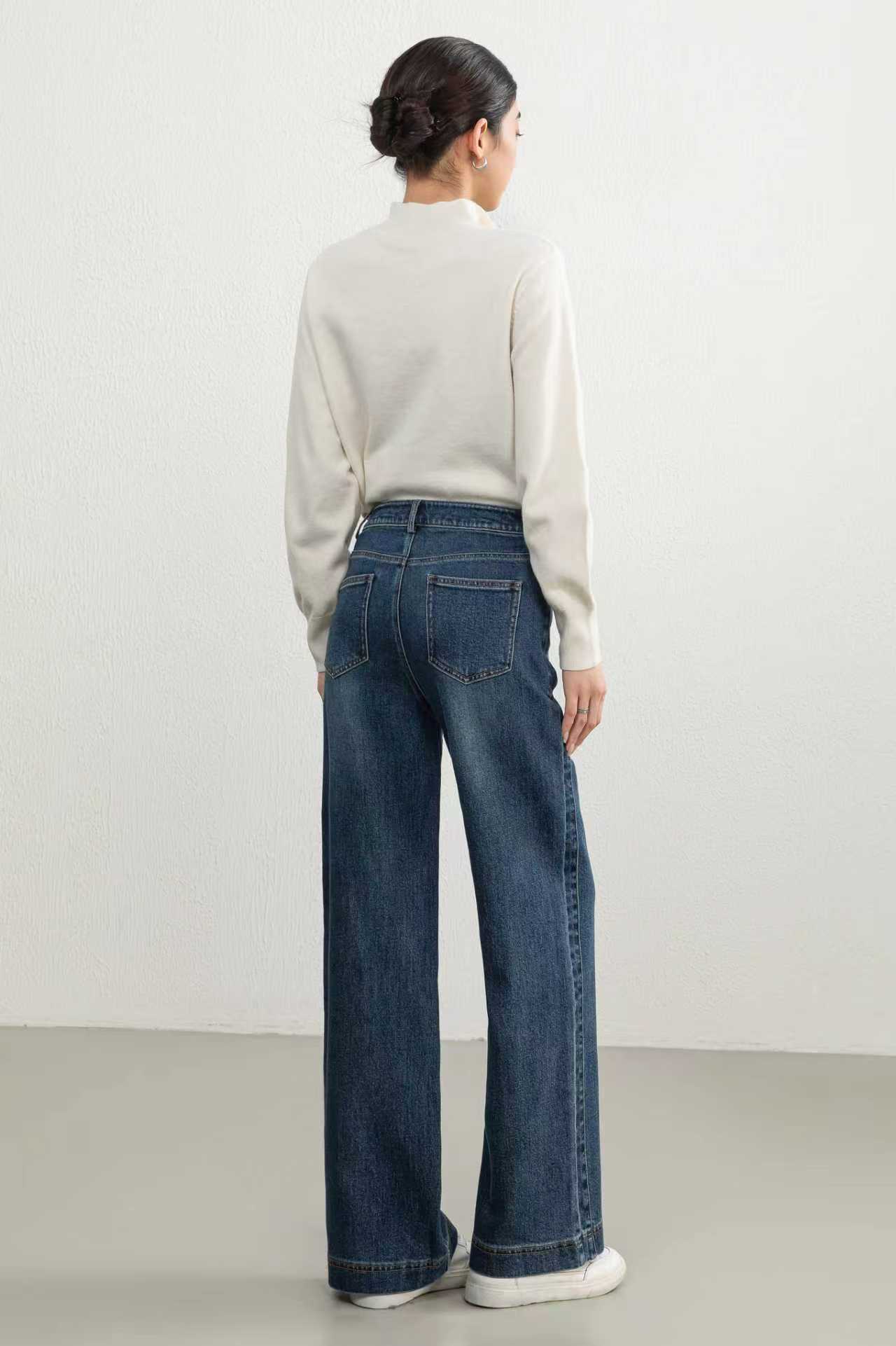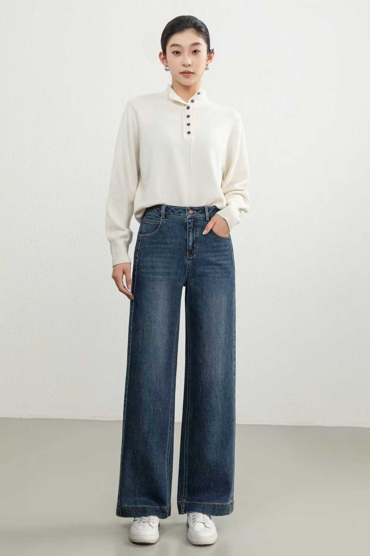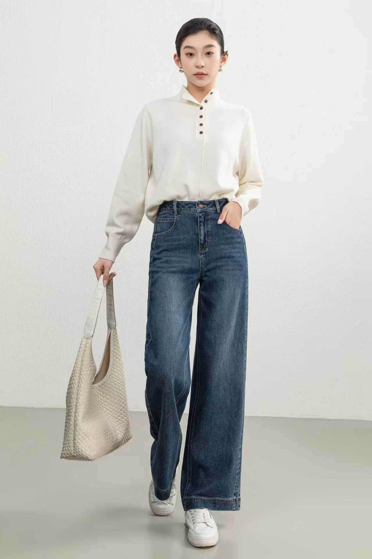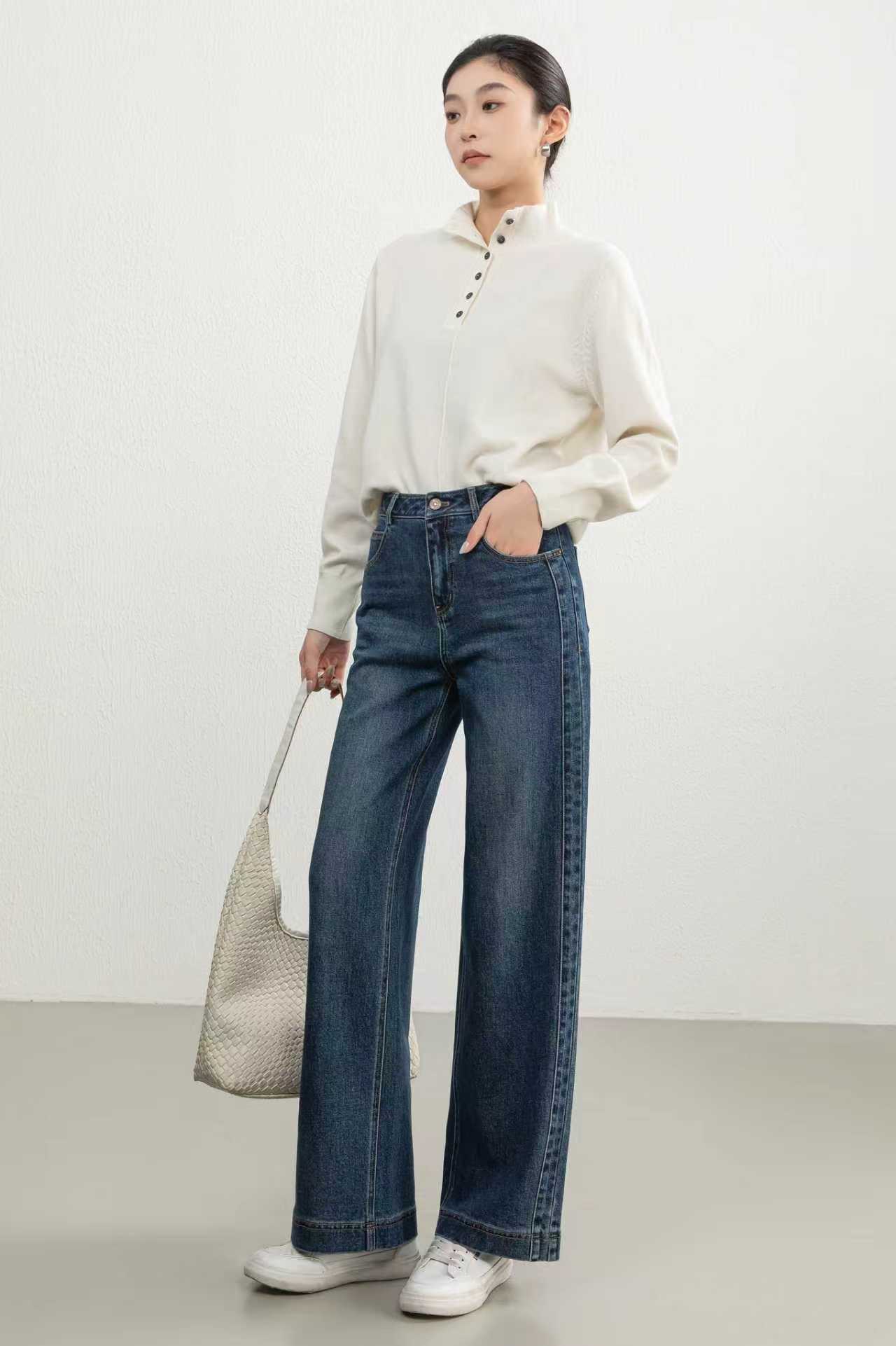 SZ3L11_蓝采和_牛仔裤_秋季_高腰水洗做旧明线设计阔腿直筒_高级女装_BERNIEELEN 伯妮斯茵
