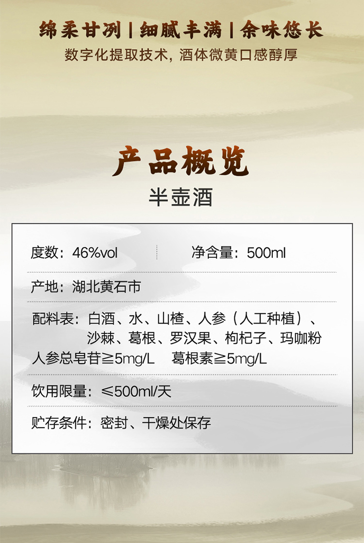 劲牌 半壶酒 46度 500ml 盒装 复合浓香 自饮小酌 送礼 送长辈 聚餐 宴请 接待客户